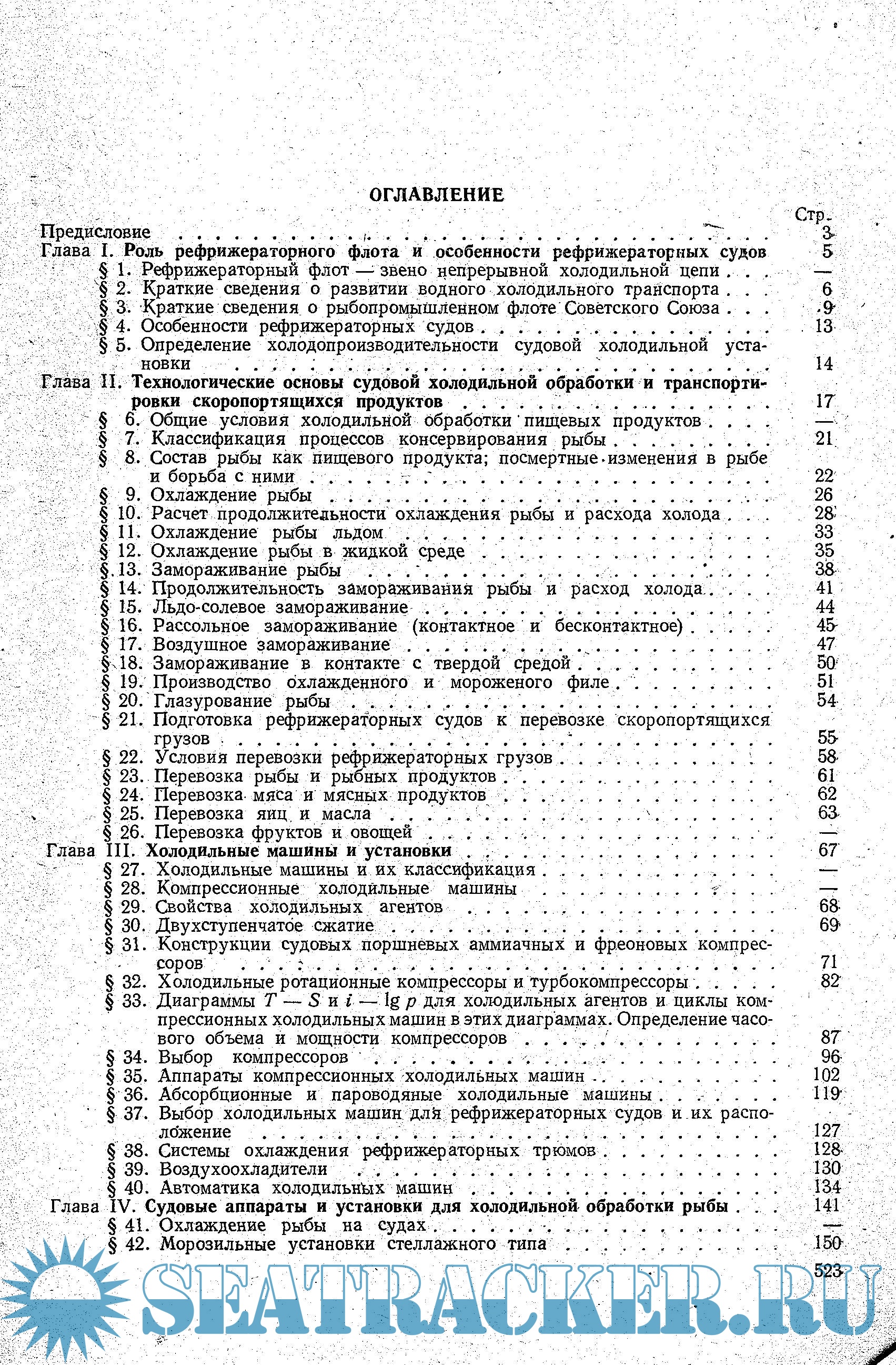 Книга предназначена для использования в качестве пособия при проектировании и эксплуатации рефрижераторных судов. Рассчитана на инженерно-технических работников конструкторских бюро и заводов и эксплуатационный персонал; может быть также использована студентами кораблестроительных и рыбопромышленных вузов и учащимися соответствующих техникумов.