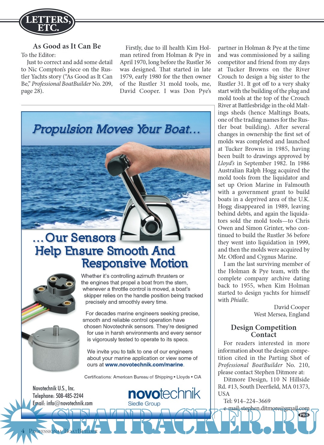Description: Professional BoatBuilder magazine is written and edited for boatbuilders, repairers, designers, and surveyors.Published six times a year, by WoodenBoat Publications, Inc., it focuses on materials, design, and construction techniques and repair solutions chosen by marine professionals.Regular technical articles provide detailed, real-world examples to improve the efficiency and quality of their work. Professional BoatBuilder has an audited circulation of 24,000 readers, worldwide.