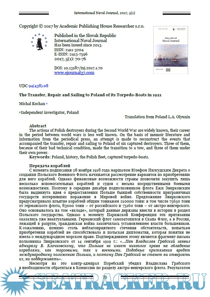 Год выпуска: 2017 Язык: Русский, Английский Автор: группа авторов Жанр: Периодическое издание (журнал) Формат: PDF Качество: Изначально компьютерное (eBook) Количество страниц: 81 Описание: Миссия журнала заключается в создании международной дискуссионной платформы в области военно-морской истории. В отличие от большинства авторитетных военно-морских исторических журналов, мы позиционируем себя в первую очередь как один из немногих научных журналов в этой области, что предполагает необходимые требования к структурированию работы, ее метаданным, библиографическому описанию, а также процедуре рецензирования.Журнал публикует материалы, статьи и краткие сообщения о результатах исследований в области военно-морской истории, на английском и русском языках. Выходные данные статьи на английском языке.