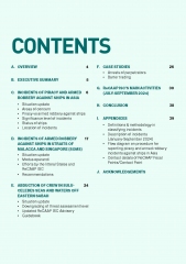 Year: 2024 Language: English Author: ReCAAP Genre: Research Papers Format: PDF Quality: eBook Pages count: 76 Description: As part of ReCAAP ISC’s efforts to ensure the needs of the shipping industry are met in an everchangingmaritime landscape, the Centre launched the enhanced Mobile App for incident reportingand information sharing and produced an updated Guide Book on the identification of fishing boatsin Asian waters. There has been significant improvement in the overall situation of Piracy and Armed Robbery Against Ships (ARAS) in Asia during January-September 2024, with 19% decrease in the number of incidents compared to January-September 2023. A total of 68 incidents of Piracy and ARAS was reported during January-September 2024 compared to 84 incidents during the same period in 2023. The improvement occurred in the Straits of Malacca and Singapore (SOMS), the Philippines, India, Thailand and Vietnam. The number of incidents in SOMS decreased by 38% during January- September 2024 compared to the same period in 2023. However, there was an increase in the number of incidents in Bangladesh and Indonesia during January-September 2024 compared to January-September 2023.