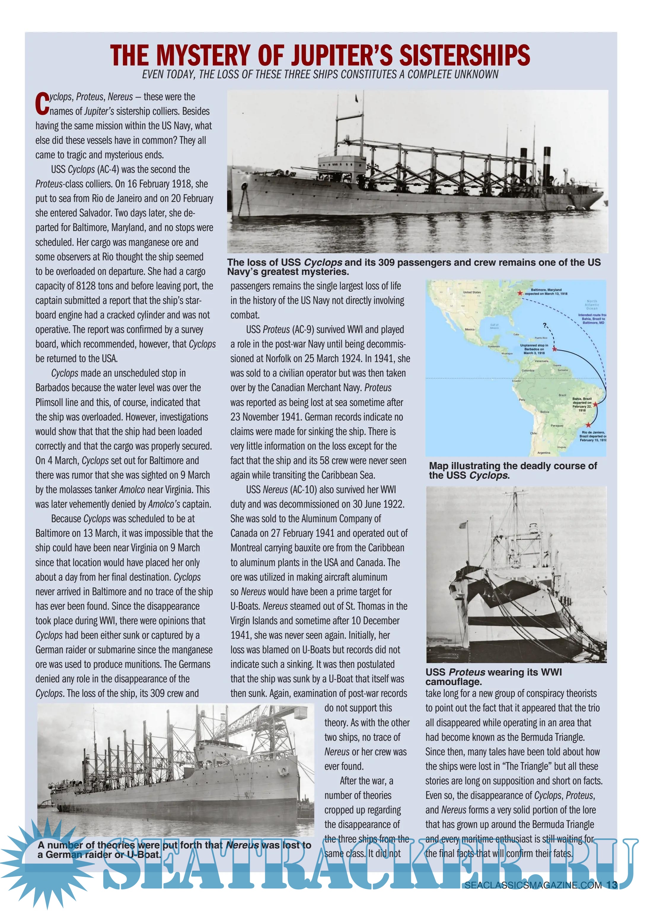 Sea Classics presents authoritative and insightful articles on all aspects of nautical history - from the great battles of WWII, to the historic commanders and admirals, to the magnificent clipper ships, to the deadly U-Boats, to the Civil War ironclads. Every month, Sea Classics brings you these types of articles… and much, much more!