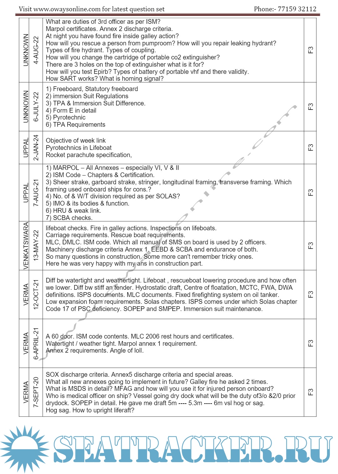 Year: 2024 Language: English Author: Oways Online Format: PDF Quality: eBook Pages count: 230 Description: Please Note:- ➢ These question are segregated as follows:- 1st Segregation By Function 2nd Segragation by Name of Surveyor & 3rd Segregation by Dates in Descending order. ➢ You might find some questions quite old, as those surveyors still comes in MMD/ D.G. However they are taking orals of other candidates and not Second Mates. However, if the surveyor of Second mates doesn’t come, they might take your orals.