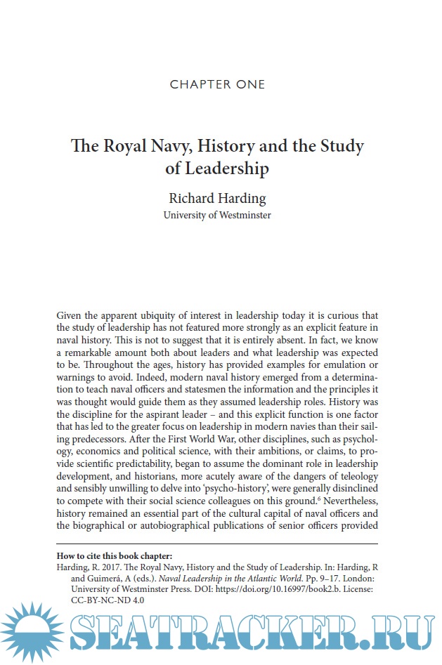 Year: 2017 Language: English Author: Richard Harding Dr, Agustin Guimera Genre: Historical Publisher: University of Westminster Press Format: PDF Quality: eBook Pages count: 213 Description: The naval leader has taken centre stage in traditional naval histories. However, while the historical narrative has been fairly consistent the development of various navies has been accompanied by assumptions, challenges and competing visions of the social characteristics of naval leaders and of their function. Whilst leadership has been a constant theme in historical studies, it has not been scrutinised as a phenomenon in its own right. This book examines the critical period in Europe between 1700 -1850, when political, economic and cultural shifts were bringing about a new understanding of the individual and of society. Bringing together context with a focus on naval leadership as a phenomenon is at the heart of this book, a unique collaborative venture between British, French and Spanish scholars. As globalisation develops in the twenty-first century the significance of navies looks set to increase. This volume of essays aims to place naval leadership in its historical context.