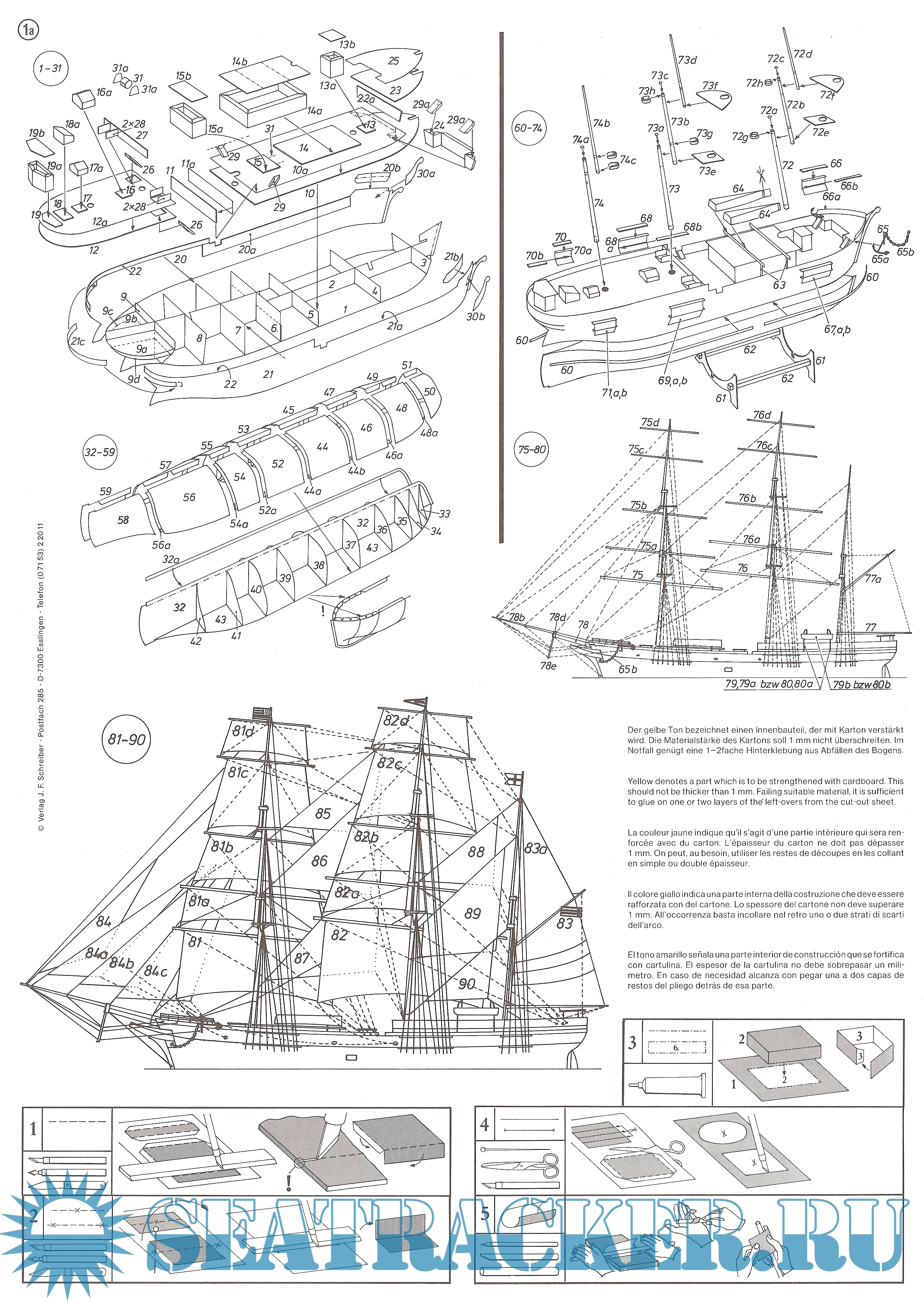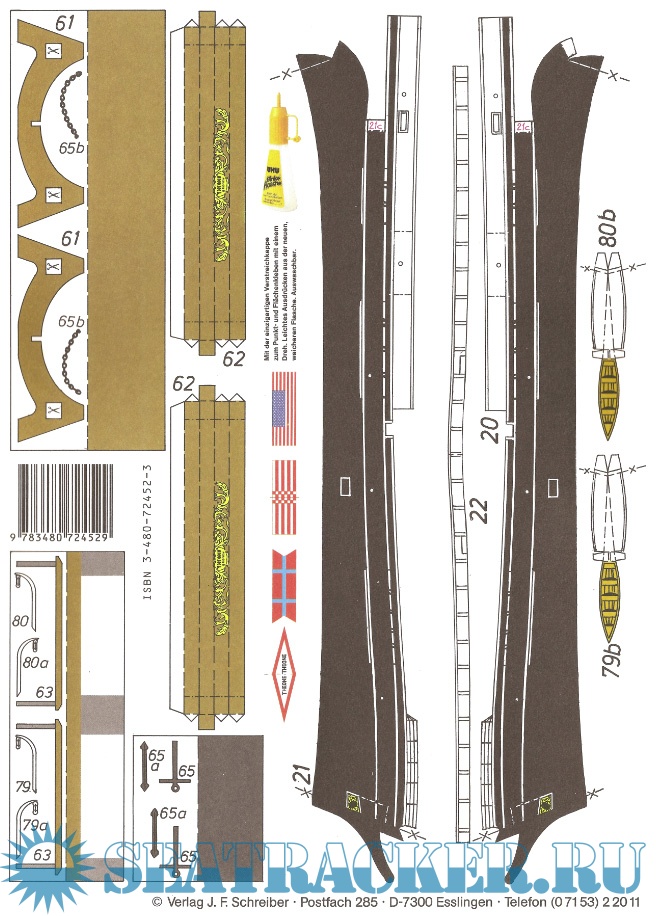Год выпуска: 2011 Язык: Английский, Испанский, Итальянский, Немецкий, Французский Автор: нет данных Жанр: Кто действительно занимается судо- (и не только) моделизмом :) Издательство: Schreiber-Bogen Формат: JPEG Качество: Изначально компьютерное (eBook) Количество страниц: 9 Описание: 9 листов цветных выкроек и инструкций для изготовления бумажной модели барка "Theone" 1863 год в масштабе 1:200