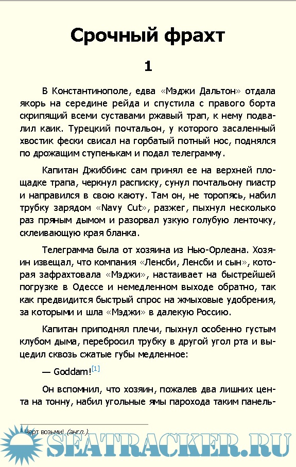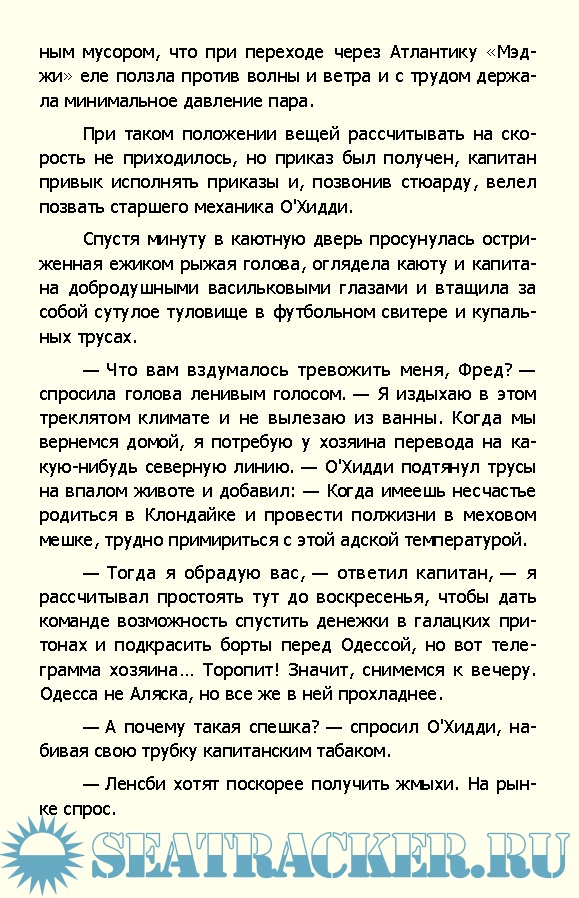 Описание: Один из самых леденящих душу рассказов советской литературы. В нём капитан американского судна в порту Одессы решает страшную дилемму: помочь ни в чем не повинному мальчишке, но при этом лишиться работы из-за срыва фрахта*, — или же обречь его на ужасную смерть и тем самым выполнить заказ своего нанимателя точно в срок. Какое же решение примет в итоге капитан парохода?
