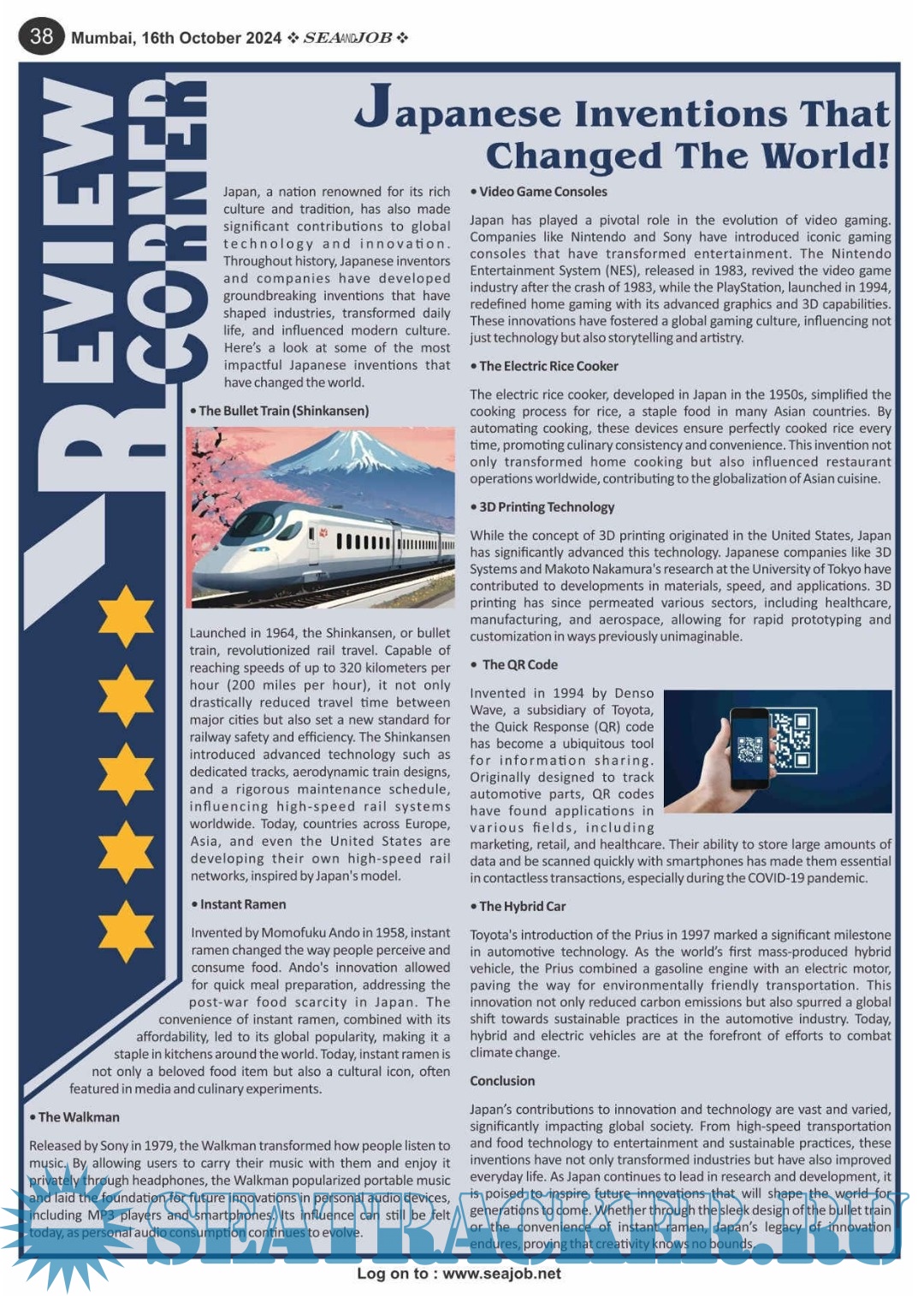 Year: 2024 Language: English Author: Sea Line Group Genre: Periodical (Magazine) Edition: Vol. XVII, No. 20/24 Format: PDF Quality: eBook Pages count: 72 Description: The Sea and Job magazine launched in May 2007, was the second venture of Sea Line Group succeeding 'seajob.net' bringing the much renowned essence to the Group, the Sea and Job Magazine quickly gained popularity, becoming the No. 1 Shipping Magazine that came to be widely circulated all over India.Sea and Job over the years has evolved as the most trusted, ethical, objective and read maritime publication that possesses a large database of subscribers from various verticals in the industry.The magazine provides informative and interesting articles covering not just the shipping world but also the world outside it. Sea and Job is also a medium for the shipping/ manning companies to advertise marine jobs and also to promote their organization by publicizing internal activities like seminars, sports events and parties.Some notable endeavors of the magazine include the Know Your Recruiter Column, the Sailing Episodes Column and the Marine Insights section. The consistent efforts and the dedication to provide extraordinary services to the industry has resulted in the magnifying popularity and patronage of Sea and Job. Additional info: 16-31 October 2024.