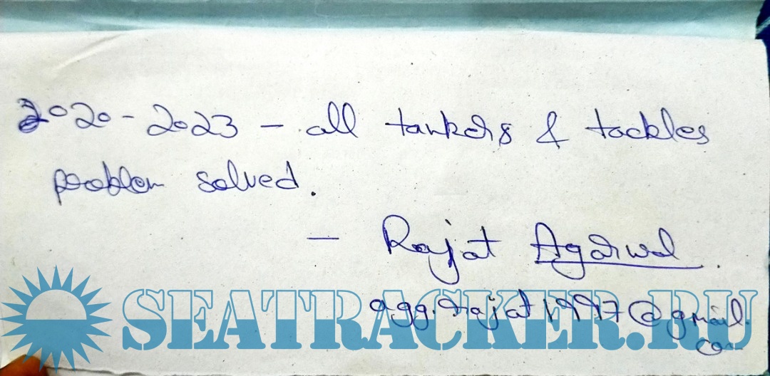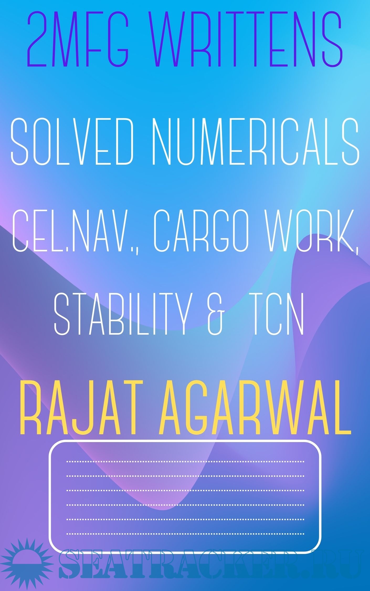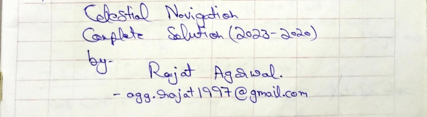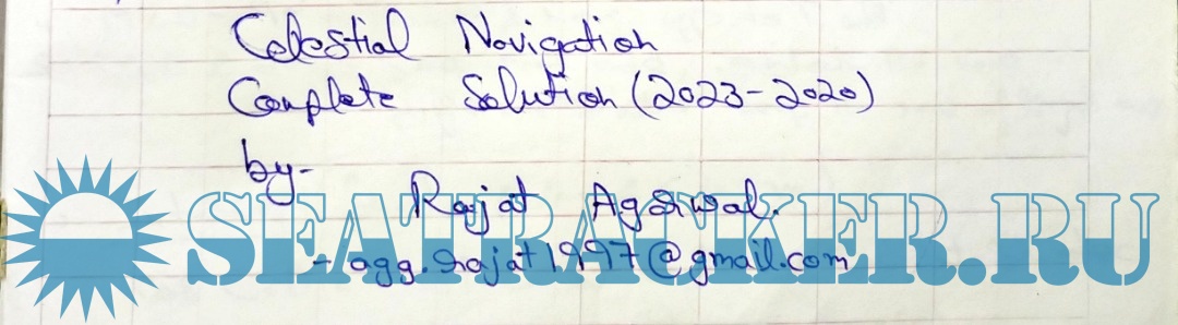 Year: 2023 Language: English Author: Rajat Agarwal Genre: Answers (cheat sheets) Format: JPEG Quality: Photos of pages Pages count: 100+ Description: Solved Numericals (Handwritten notes) of past QP (2020-2023) Mercantile Marine Department (MMD), India Examinations for Second Mates (2MFG). Papers: 1. Cargo Handling and Stowage 2. Terrestrial and Coastal Navigation 3. Celestial Navigation 4. Stability