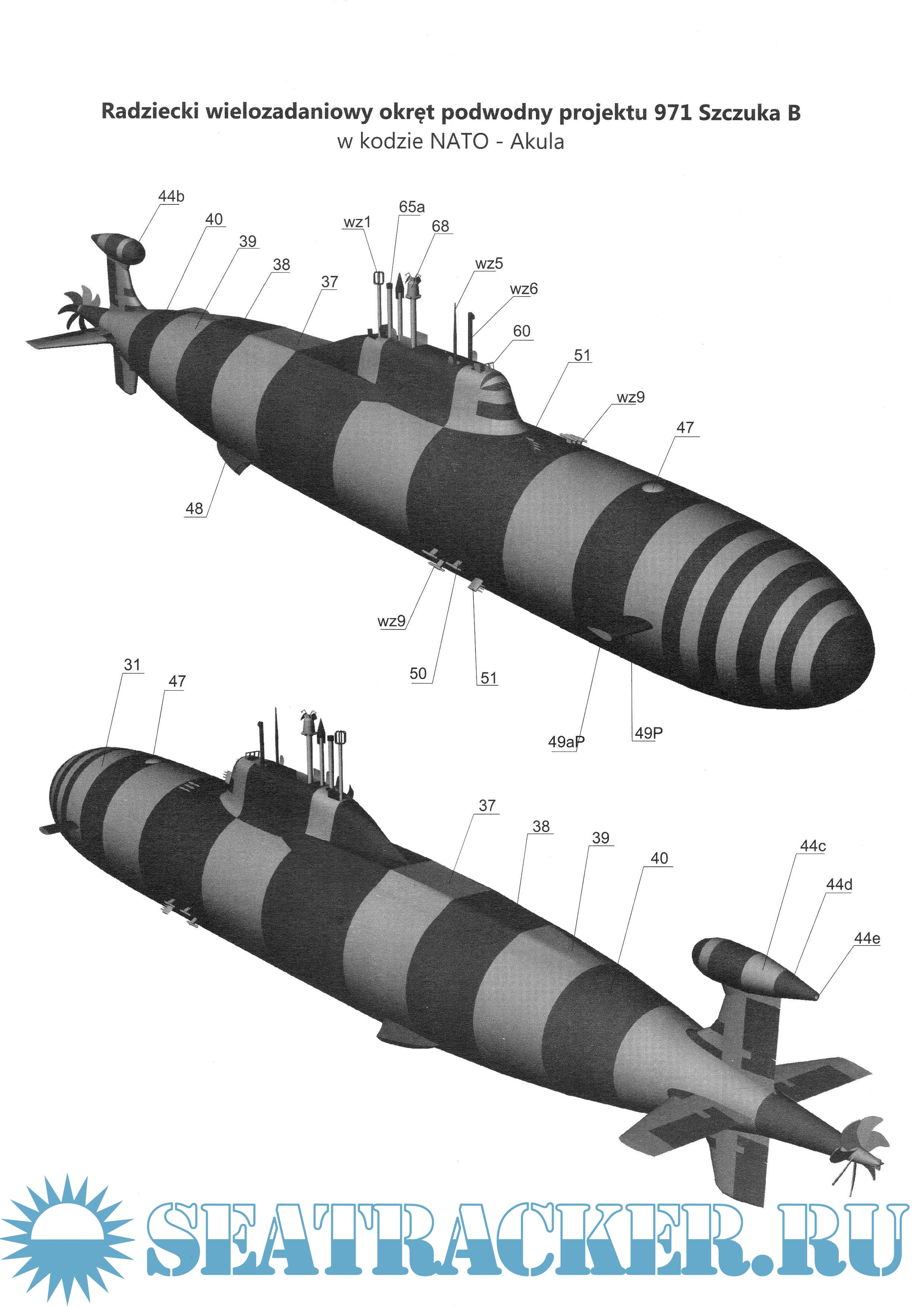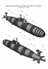 Описание: 13 листов цветных выкроек и инструкций для изготовления бумажной модели подводной лодки проекта 971 АКУЛА