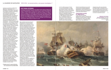 Description: La Marine impériale est le pan le plus méconnu de la légende napoléonienne. Elle est souvent assimilée à Trafalgar et au camp de Boulogne, parfois à Surcouf, presque jamais à ses aspects novateurs ou seulement humains. Pourtant, entre Boulogne et 1815, douze années se passent, intenses pour la Marine. La reconstruction de la flotte, la réorganisation des effectifs, l’effort extrême consenti financièrement et le développement de la guerre de course en sont les principaux aspects. Ce numéro a pour ambition de jeter un regard neuf sur les hommes qui ont fait la Marine de l’Empereur, et sur les événements les plus célèbres en les appréhendant sous un aspect moins connu. À la fin du règne la Marine a changé en profondeur, mais son ministre est toujours le même. Denis Decrès est un marin intrépide et un ministre courtisan mais compétent. Garneray, le corsaire de Surcouf, deviendra le peintre de la prise du Kent, et le célèbre chant Au 31 du mois d’août évoluera en une réécriture magnifiée de l’événement. Napoléon au camp de Boulogne, de Maurice Orange, est considéré à juste titre comme un chef-d’œuvre mais il dépeint un événement qui n’a jamais eu lieu. Trafalgar et ses prémices, la bataille des Quinze-Vingt, sont les deux batailles emblématiques de 1805 et les plus connues du règne. Mais qui se souvient du témoignage de Magon et surtout des circonstances de sa publication ? Qui se rappelle que le plan d’invasion avait été abandonné trois mois avant la célèbre bataille ? Ce fait invalide de facto la théorie pourtant encore répandue d’une bataille qui serait à l’origine de l’abandon du projet d’invasion de l’Angleterre. Enfin, les efforts de construction navale postérieurs à 1810 sont la partie du règne qui a permis qu’en 1815, l’Empereur ait une Marine moderne et des équipages militarisés.