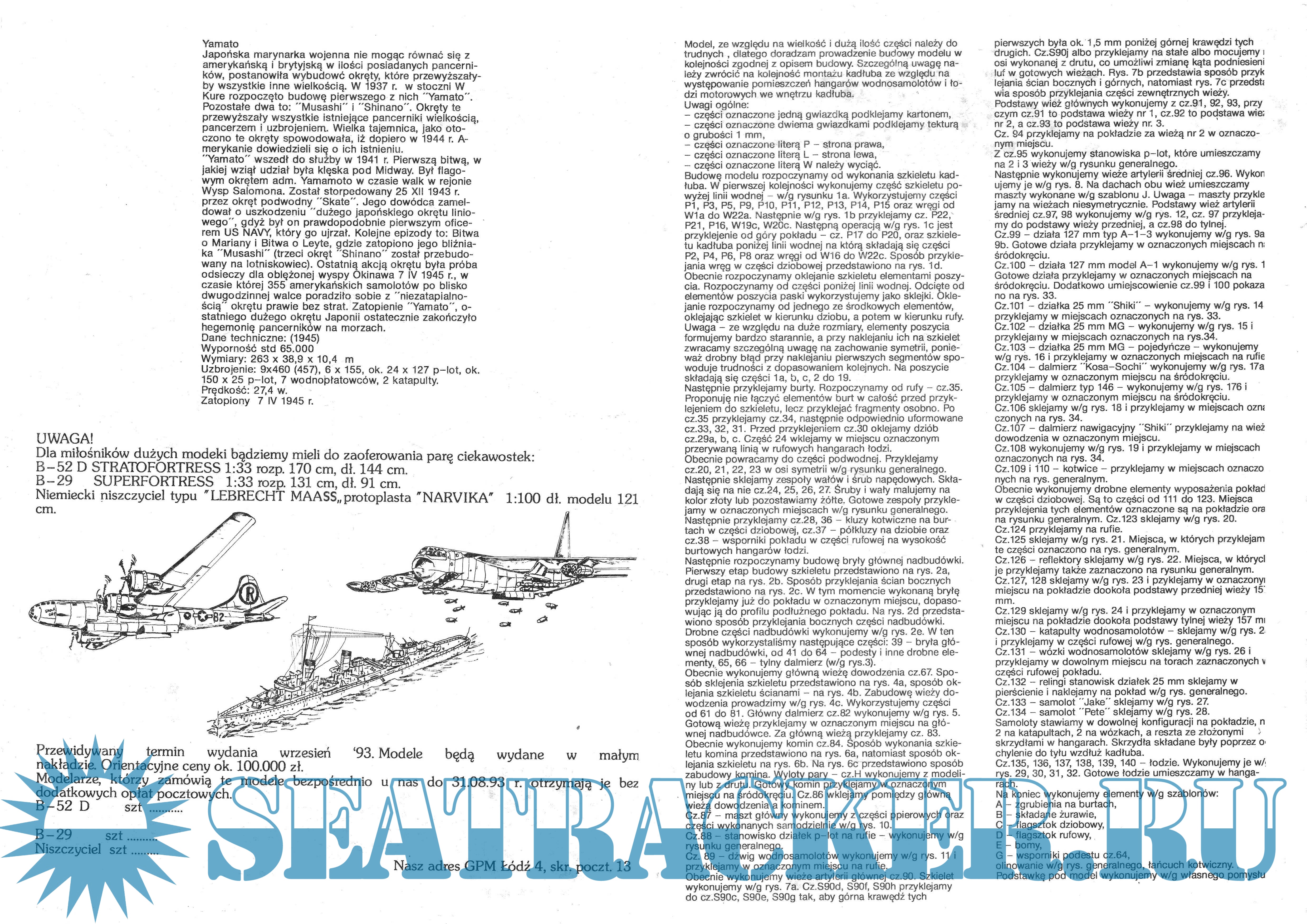 32 листа цветных выкроек и инструкций для изготовления из бумаги японского линкора IJN Yamato в масштабе 1:200