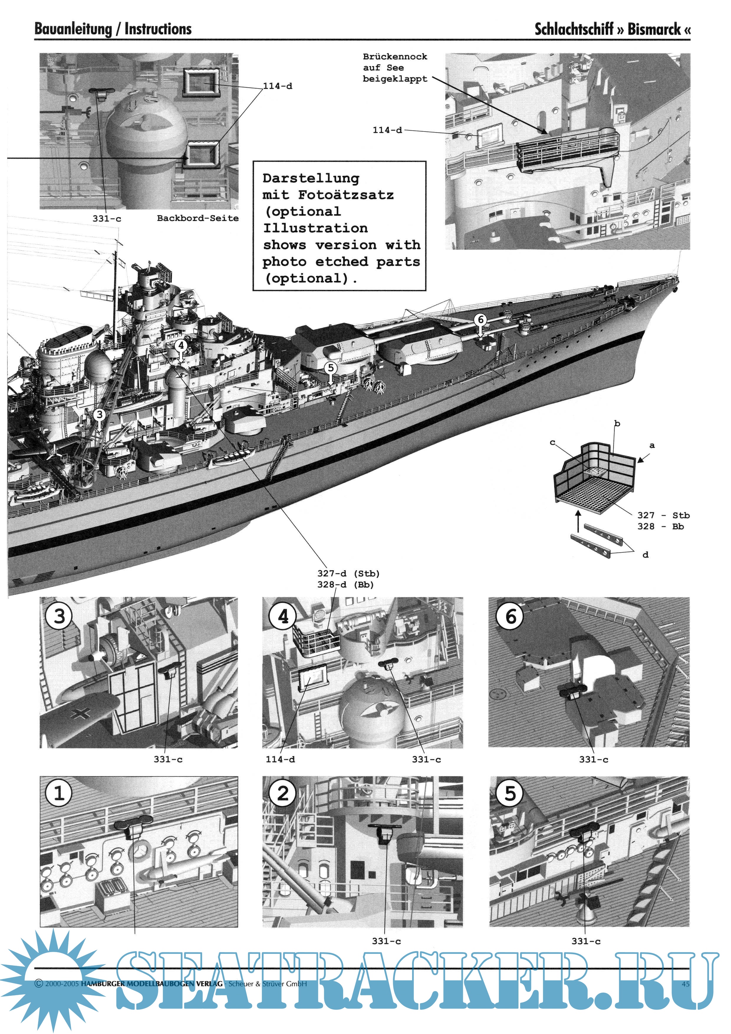118 листов цветных выкроек и инструкций для изготовления бумажной модели немецкого линкора BISMARCK 1940 год в масштабе 1:250Скриншоты