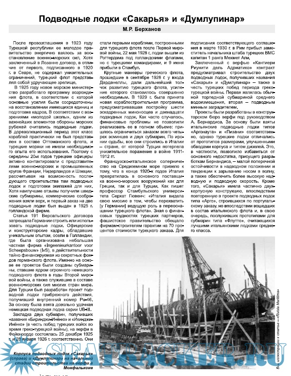 Статьи Алексея Анатольевича Гайдука (Санкт-Петербург) и Марата Рашидовича Берханова (Казань) посвящены малоизвестным кораблям, входившим в состав отечественного и зарубежного флотов