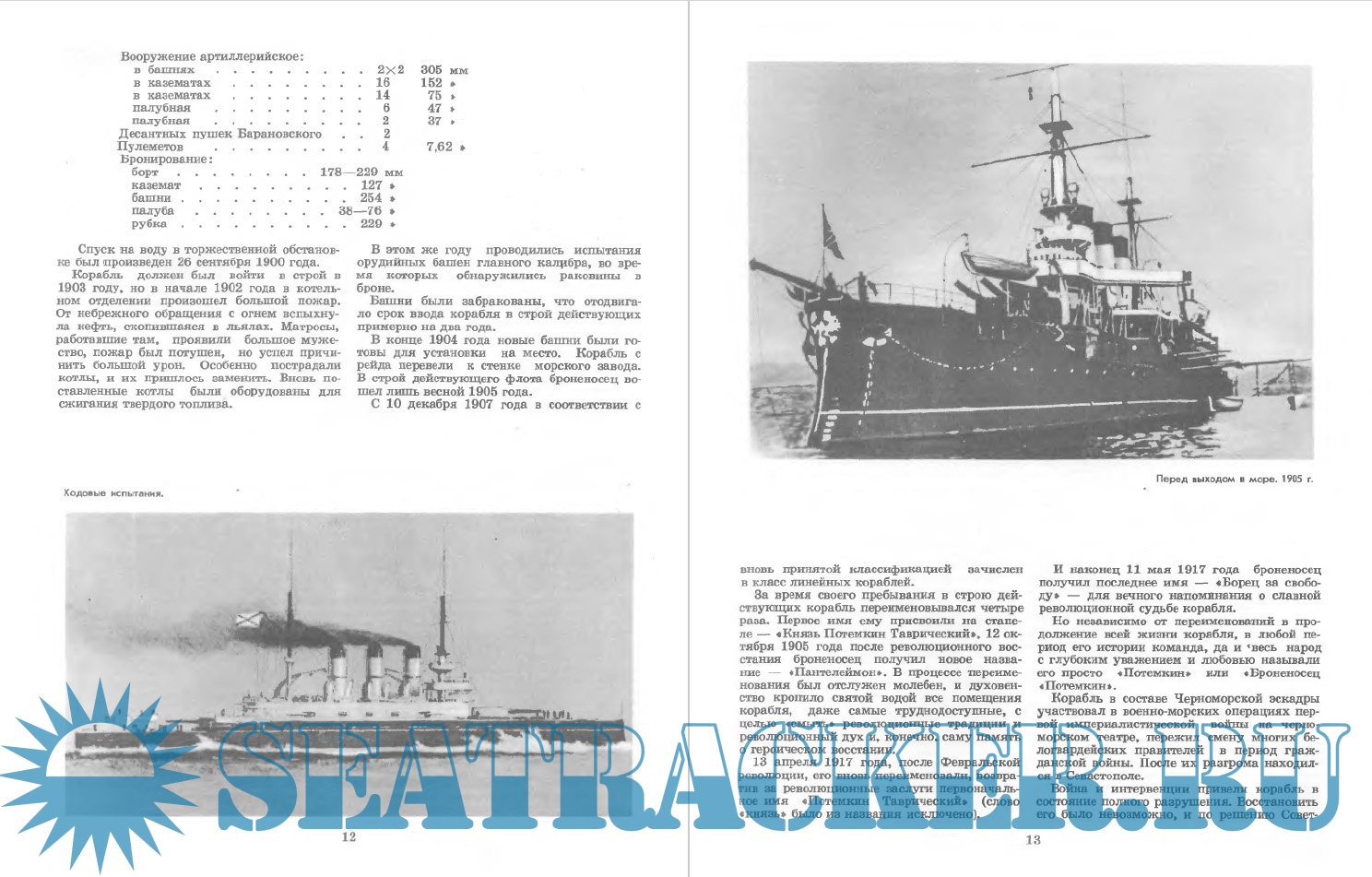 Год выпуска: 1981 Язык: Русский Автор: И.Максимихин. Жанр: Кто действительно занимается судо- (и не только) моделизмом :) Издательство: Молодая Гвардия Формат: PDF Качество: Отсканированные страницы Количество страниц: 96 Описание: Книга рассказывает об истории легендарного корабля от начала постройки и до исключения из списков. Любители моделизма могут использовать ее в качестве руководства, которое поможет сделать модель, представляющую "Потемкин" таким, каким он был в июне 1905 года.