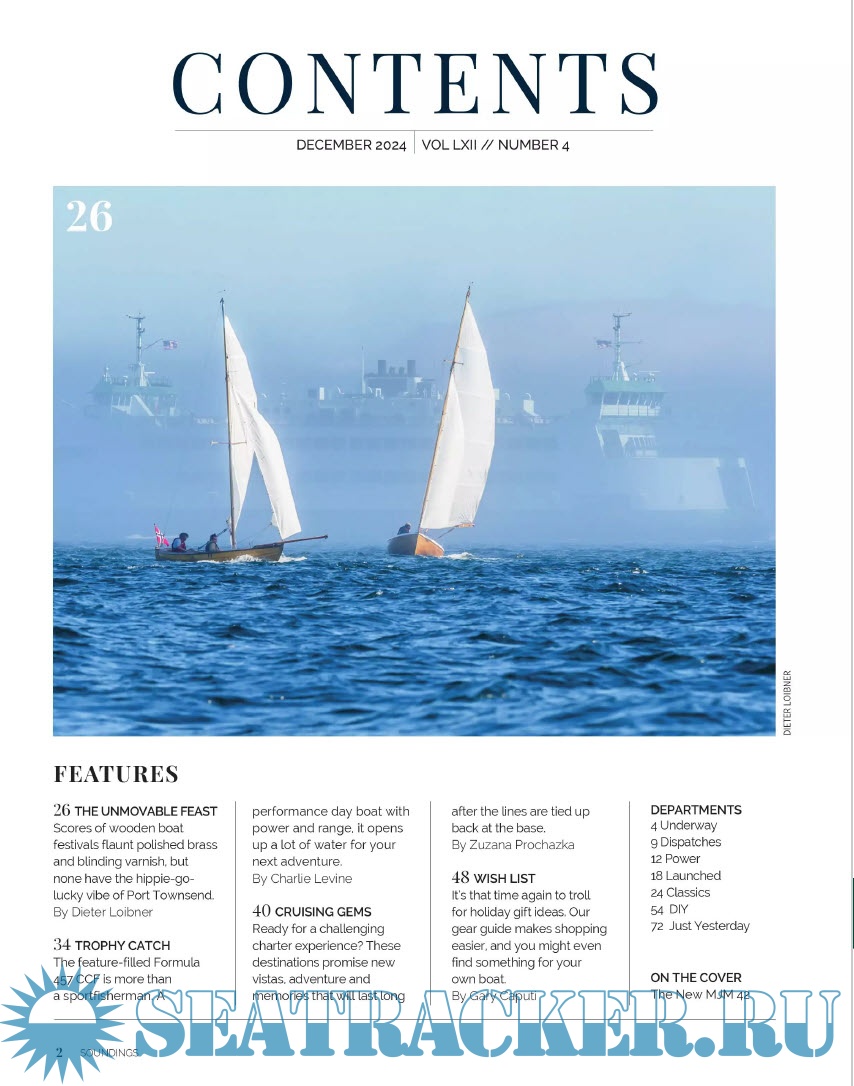 Year: 2024 Language: English Editor: Jeanne Graig Genre: Magazine Edition: December 2024 Format: PDF Quality: eBook Pages count: 76 Description: Soundings is the news and feature publication for pleasure boaters.Soundings Magazine entertains and informs a loyal audience of passionate boaters. Our award-winning coverage is designed to inspire and educate our engaged owner/operatQuote | Copy | Translate | Webor audience on the latest developments in boating, while also exploring the heritage, history and passion for our pastime that serious enthusiasts share. SOUNDINGS continues to uphold the highest standards of journalism in all our print and digital offerings.