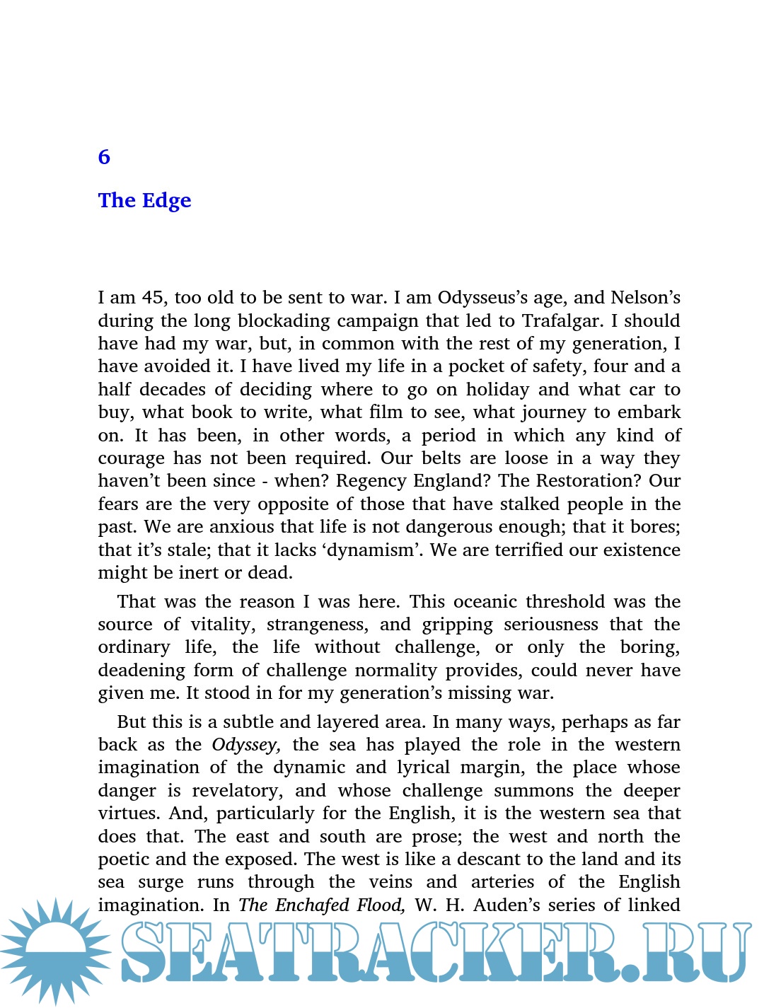 But the book is not just a travel journal. Adam Nicolson writes of his own yearnings for the sea and for wide open spaces. His year is strung between the competing claims of leaving and belonging, of thinking that no life could be more exhilarating than battling a big gale driving in out of the Atlantic and of wanting to be back, in harbour, safe, still and protected. Running throughout the book is a dialogue within the author himself between the attractions of home and not home, the certainties of what you know and the seductions of what you don't.