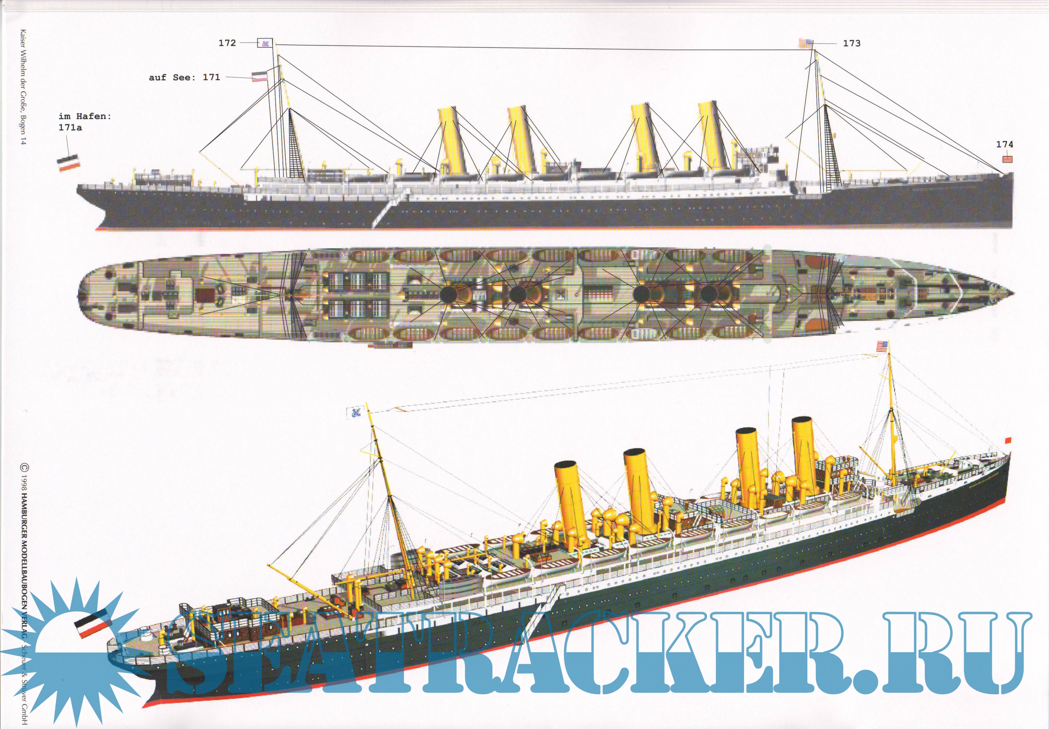 Год выпуска: 1998 Язык: Английский, Немецкий Автор: нет Жанр: Кто действительно занимается судо- (и не только) моделизмом :) Издание: HMV Формат: JPEG Качество: Изначально компьютерное (eBook) Количество страниц: 41 Описание: 41 лист цветных выкроек и инструкций для изготовления бумажной модели германского океанского лайнера Kaiser Wilhelm der Grosse, 1897г в масштабе 1:250
