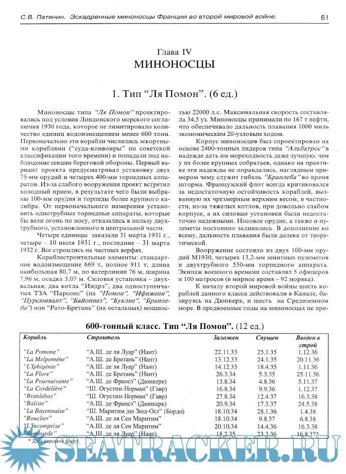 Год выпуска: 2003 Язык: Русский Автор: Патянин С.В. Издание: Корабли и сражения Формат: PDF Качество: Отсканированные страницы Количество страниц: 112 Описание: На 1 сентября 1939 г. в составе военно-морских сил Французской республики находилось 32 лидера, 26 эсминцев и 12 миноносцев или 70 боевых кораблей суммарным водоизмещением около 123,5 тыс. т. Качественно и количественно они соответствовали ставившимся перед ними задачам и в целом не уступали своим противникам по тактико-техническим характеристикам. Миноносный флот был очень молодым: из общего числа 20 единиц (29 %) вступили в строй менее 5 лет назад, 26 кораблей (37 %) имели возраст от 5 до 10 лет, и 24 корабля (34 %) были старше 10 лет. Правда, все французские эсминцы были построены до 1931 года, а в числе наиболее молодых оказались главным образом миноносцы.