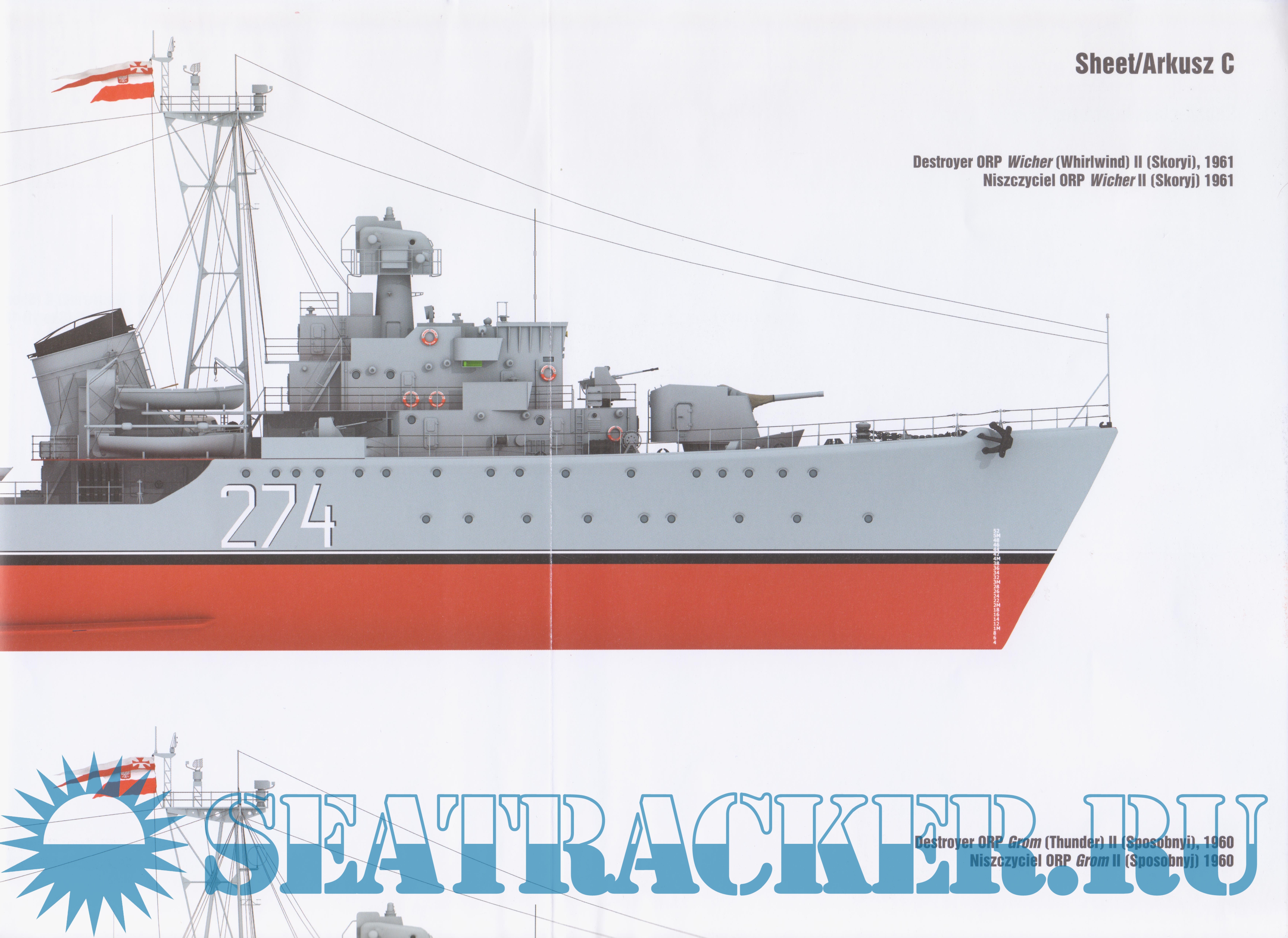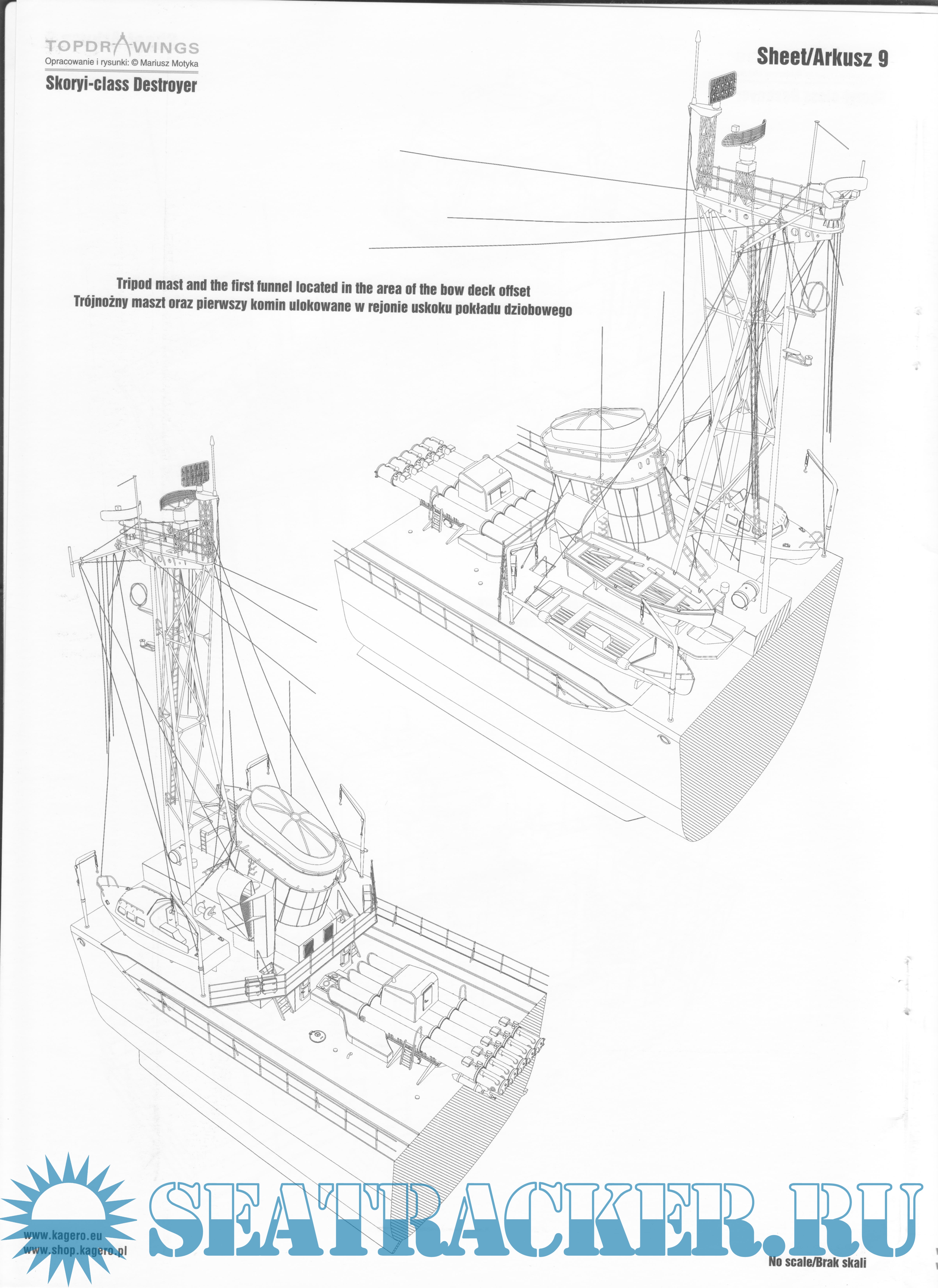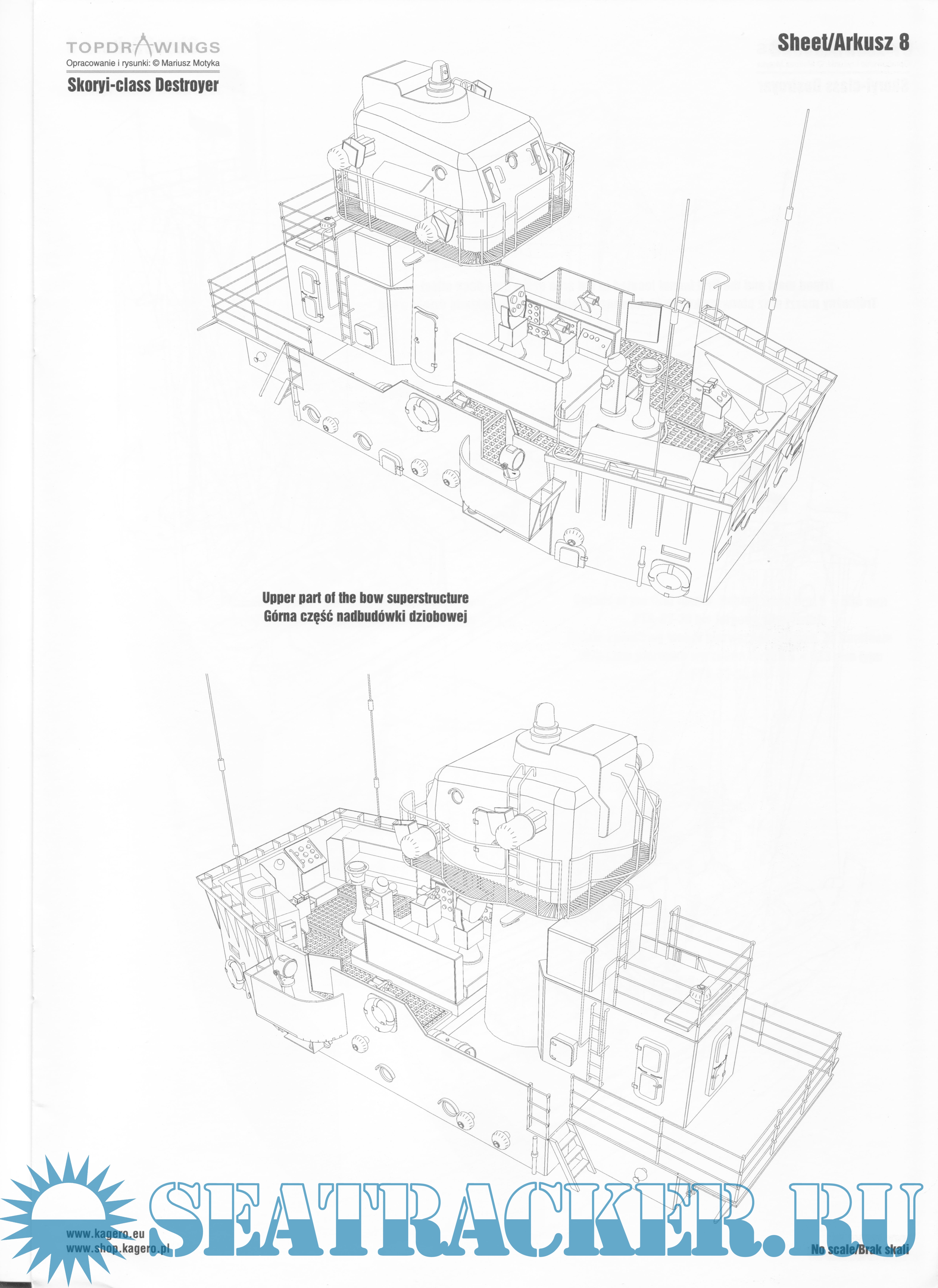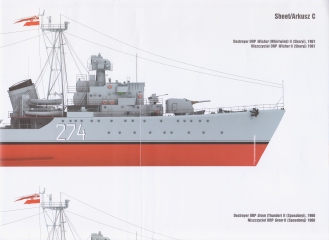 Description: Number 82 in this series is about the famous Skoryi class Destroyer. Scale plans include main superstructure details from 1961, at various levels, navigation bridge, upper deck, funnel, artillery/batteries director, turrets, masts, radar antennas, cutaways, etc. As a bonus there A3 (A4) size sheet with top & side views of the battleship and her details. All drawings are first class and you can use them to add much more detail to your scale kit using plasticard or other materials.