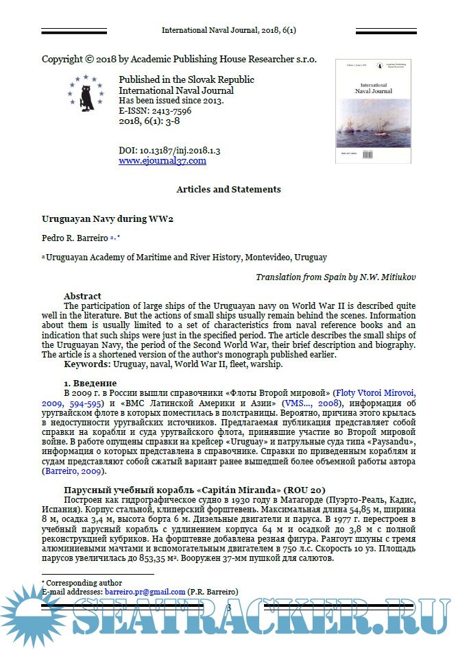 Описание: Миссия журнала заключается в создании международной дискуссионной платформы в области военно-морской истории. В отличие от большинства авторитетных военно-морских исторических журналов, мы позиционируем себя в первую очередь как один из немногих научных журналов в этой области, что предполагает необходимые требования к структурированию работы, ее метаданным, библиографическому описанию, а также процедуре рецензирования.Журнал публикует материалы, статьи и краткие сообщения о результатах исследований в области военно-морской истории, на английском и русском языках. Выходные данные статьи на английском языке.