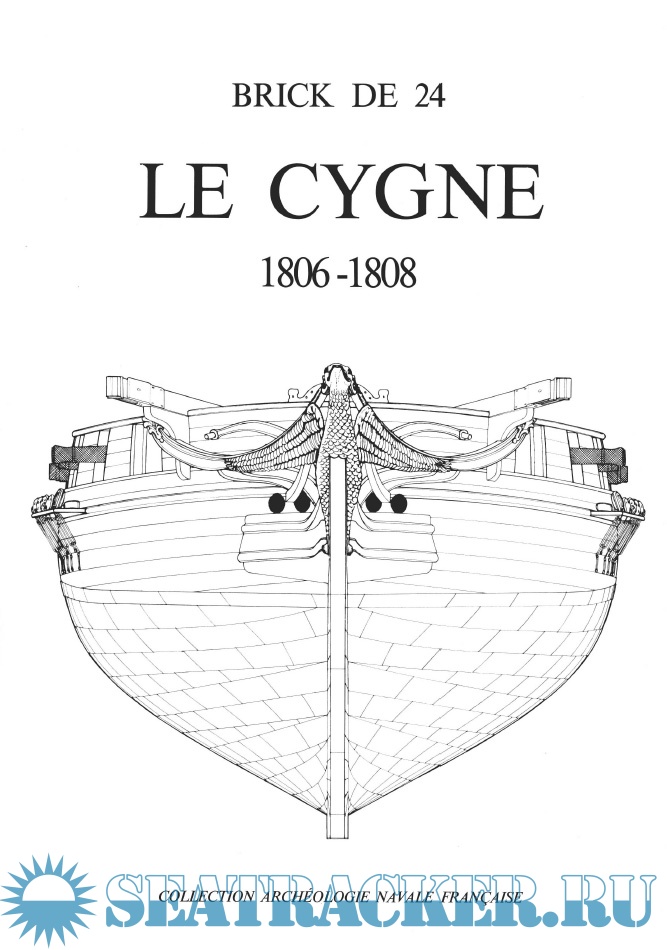 Description: This monograph of the brig LE CYGNE (The Swan) represents a ship's type of the imperial navy. Armed with two 8-pdr guns and fourteen 24-pdr carronades, construction of LE CYGNE was begun in Le Havre at the end of April 1806. She was launched on 12 September of the same year by the builder James, based on the engineer Pastels plans. 90 feet in length, with a midship beam measuring 26 feet, 6 inches, a depth of 13 feet, 6 inches, this ship is one of the most representative of the brig called a 24-pdr in the French Navy (the caliber of the carronades in the main armaments). Approximately 60 such ships were built during the period 1801-1813.