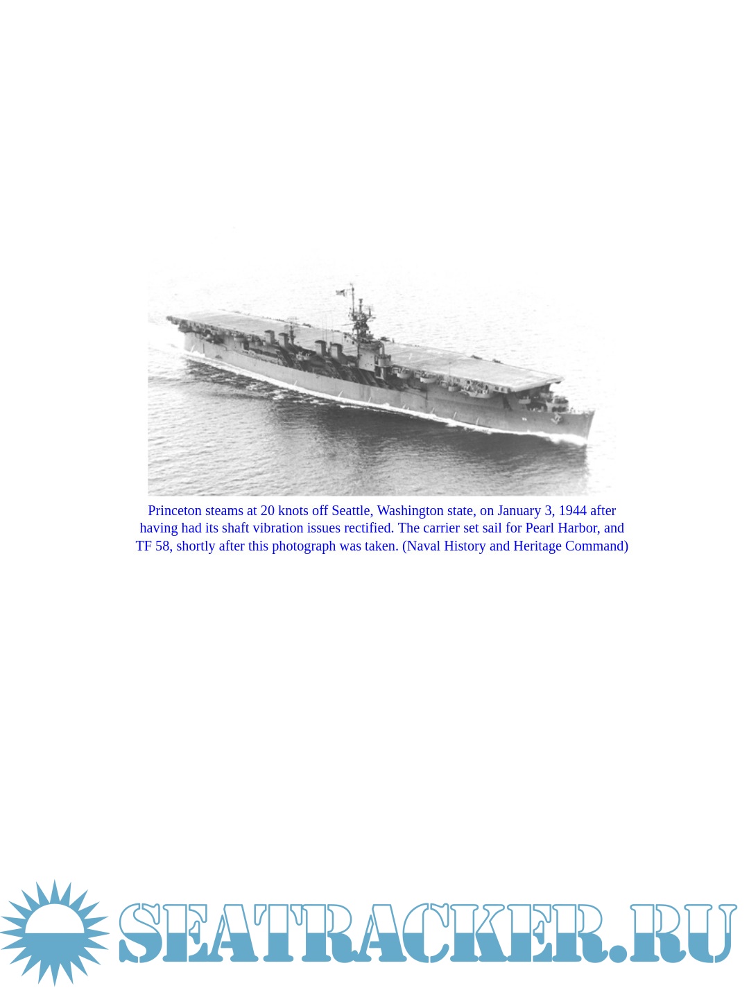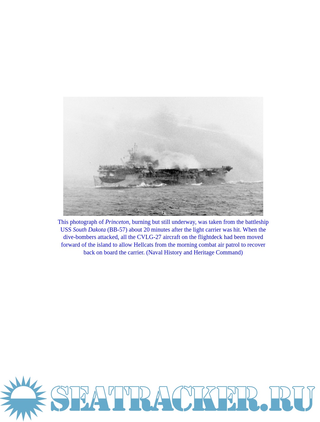 Description: An in-depth history of the US Navy's light aircraft carrier the USS Princeton and its operational exploits in the Pacific Theater of World War II.