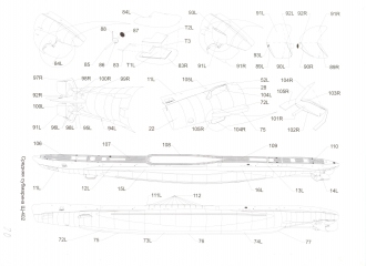Описание: 31 лист цветных выкроек и инструкций для изготовления бумажной модели подводной лодки Щ-402 1936 год в масштабе 1:100
