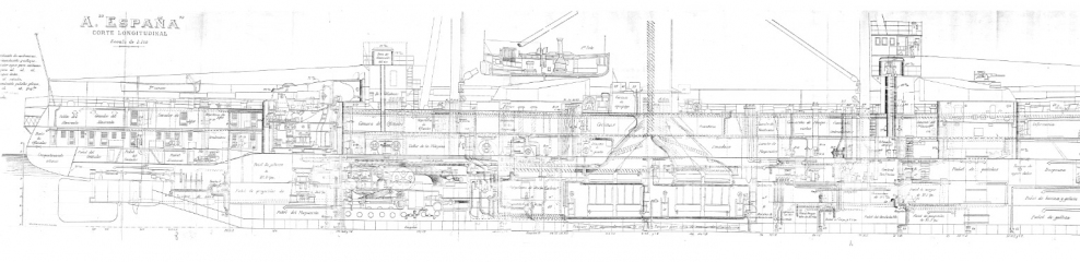 Описание: 13 листов чертежей испанского линкора-дредноута Espana 1831 год