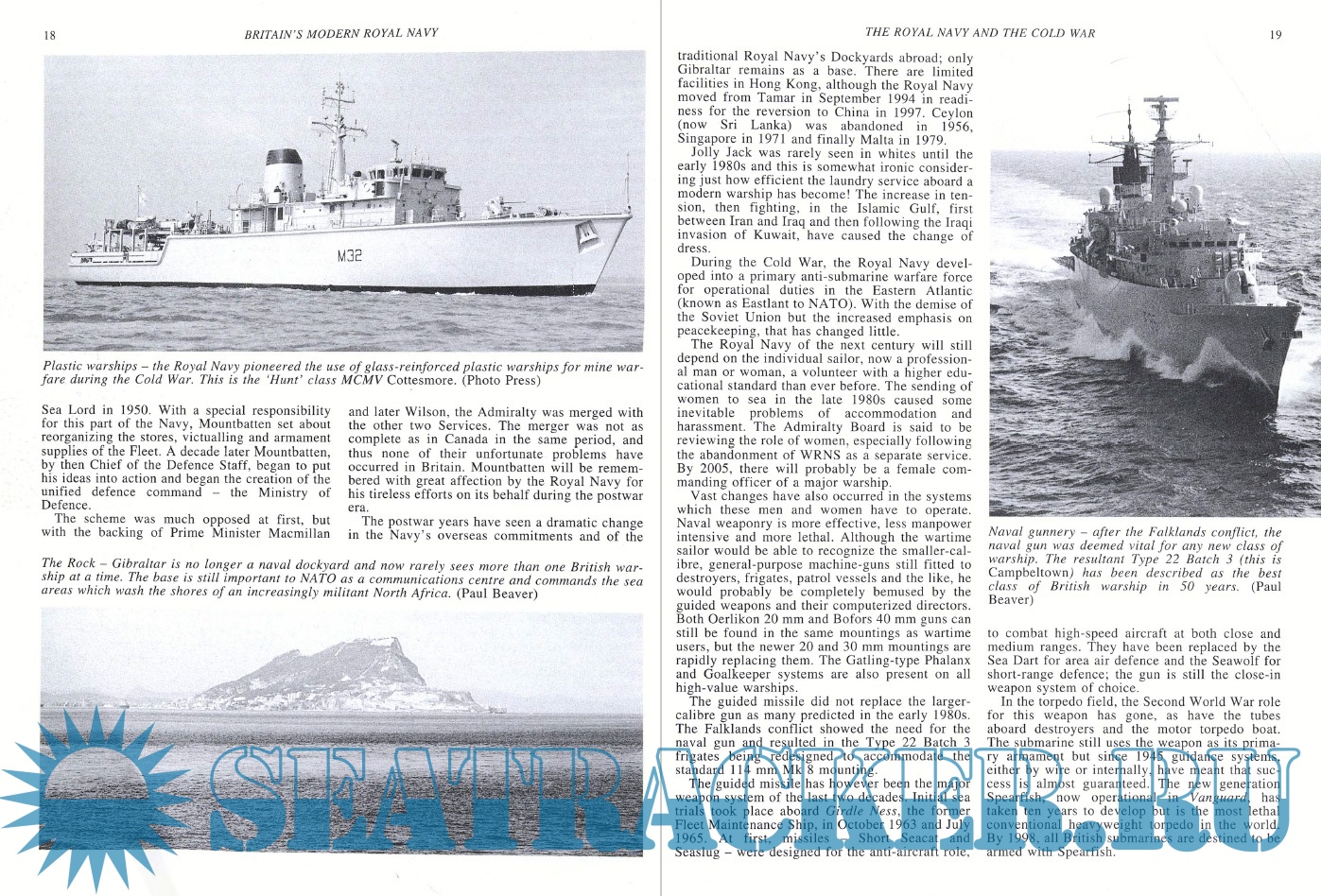 Description: Once the world's largest and most powerful naval force, the Royal Navy is now moving towards the second division as regards the number of ships, bu it has managed to maintain its position as number one in training, personnel and professionalism. The challenge for the Royal Navy as it moves towards the 21st century is to maintain that credibility in the face of defence cuts and changing commitments.