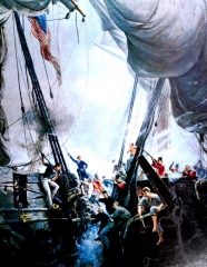 Description: Paintings, photographs, charts, maps, ship plans, and battle diagrams supplement an account of the Navy's course from its colonial beginnings to its current deployment