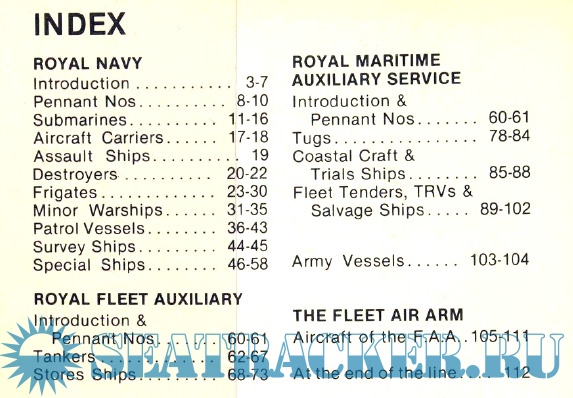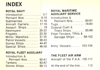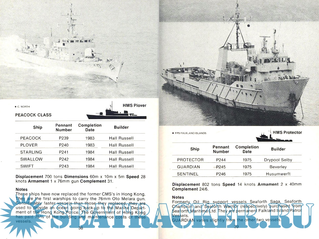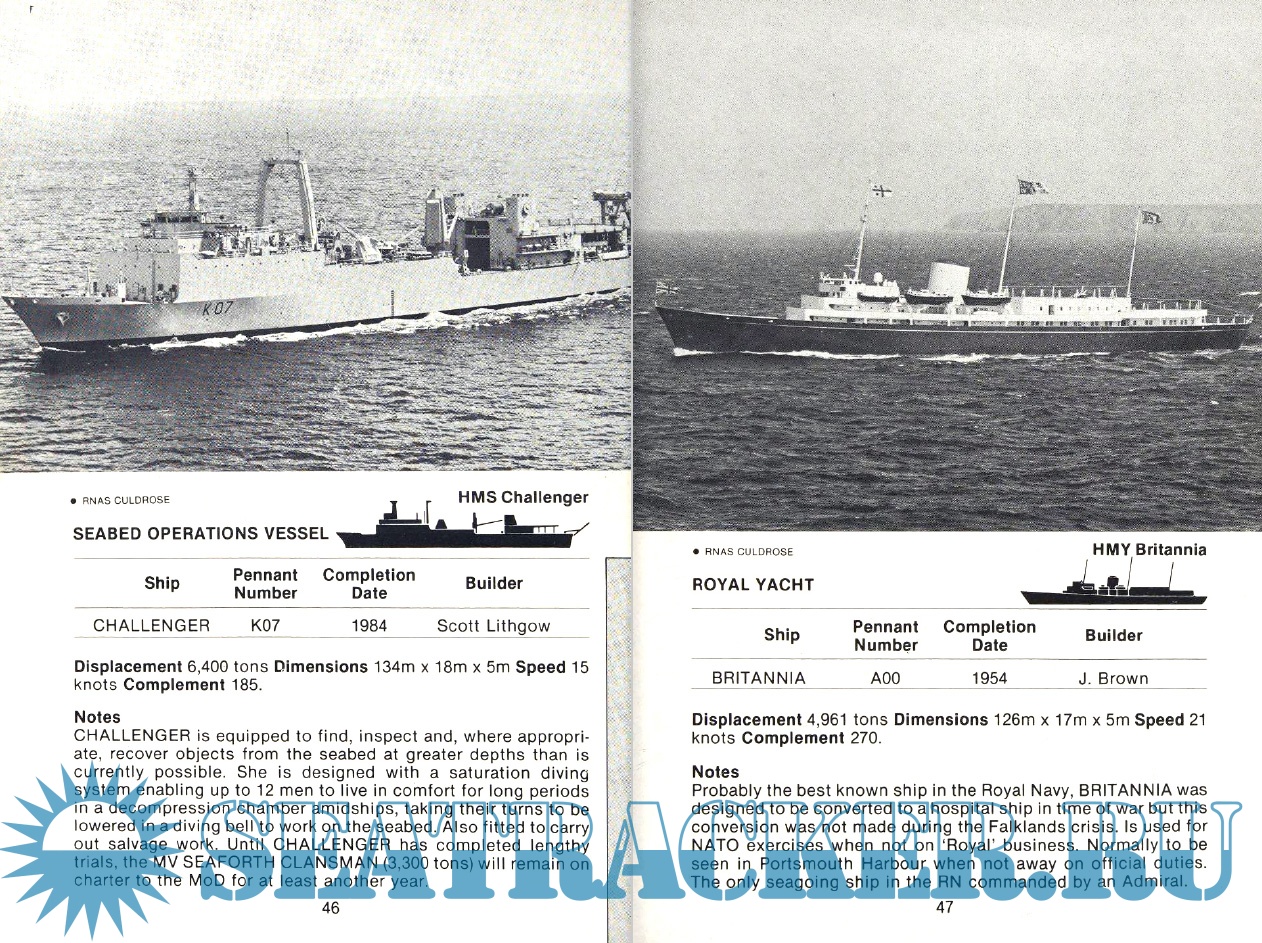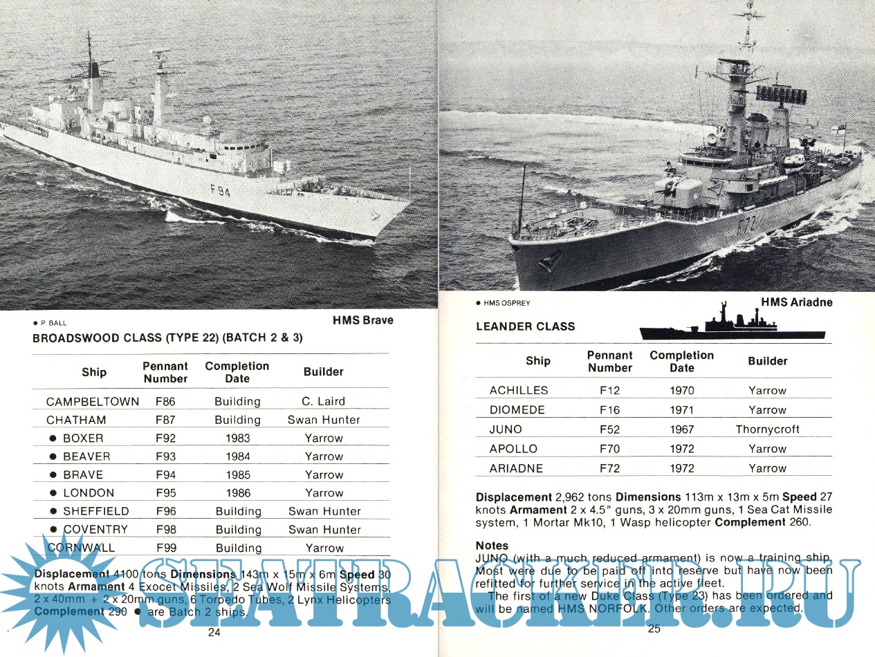 Year: 1985 Language: English Author: Mike Critchley Genre: Catalog, Encyclopedia, Historical Publisher: Maritime Books Format: PDF Quality: Scanned pages Pages count: 116 Description: This revised and updated guide to Ships, Aircraft and Armaments of the Royal Navy has now been expanded to include ships of the Royal Marines and the Border Agency as of 1987. The book begins with a detailed overview of the current state of the Royal Navy, followed by sections detailing the fleets of the Royal Navy, Royal Navy auxiliary vessels and support vessels operated under contract. This also includes vessels of the Royal Marines, Land Forces and Border Troops. This volume, which contains color images for each class of ships, also contains silhouettes, class lists, pennant numbers, technical specifications and brief notes. At the end of the book is a list of ships mothballed in the United Kingdom and performing a secondary role after decommissioning, as well as a brief description of ships that have been scrapped since the publication of the previous edition.