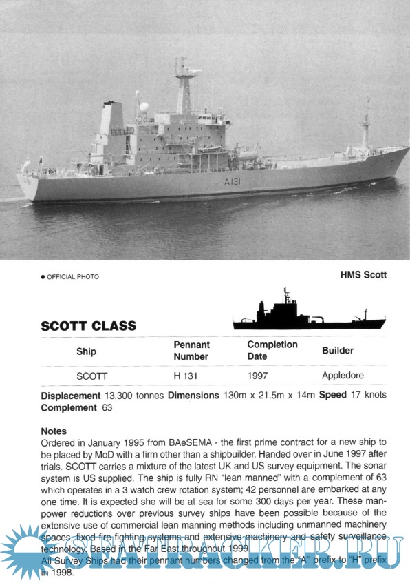 Year: 2001 Language: English Author: Mike Critchley Genre: Catalog, Encyclopedia, Historical Publisher: Maritime Books Format: PDF Quality: Scanned pages Pages count: 99 Description: This revised and updated guide to Ships, Aircraft and Armaments of the Royal Navy has now been expanded to include ships of the Royal Marines and the Border Agency as of 2001. The book begins with a detailed overview of the current state of the Royal Navy, followed by sections detailing the fleets of the Royal Navy, Royal Navy auxiliary vessels and support vessels operated under contract. This also includes vessels of the Royal Marines, Land Forces and Border Troops. This volume, which contains color images for each class of ships, also contains silhouettes, class lists, pennant numbers, technical specifications and brief notes. At the end of the book is a list of ships mothballed in the United Kingdom and performing a secondary role after decommissioning, as well as a brief description of ships that have been scrapped since the publication of the previous edition.