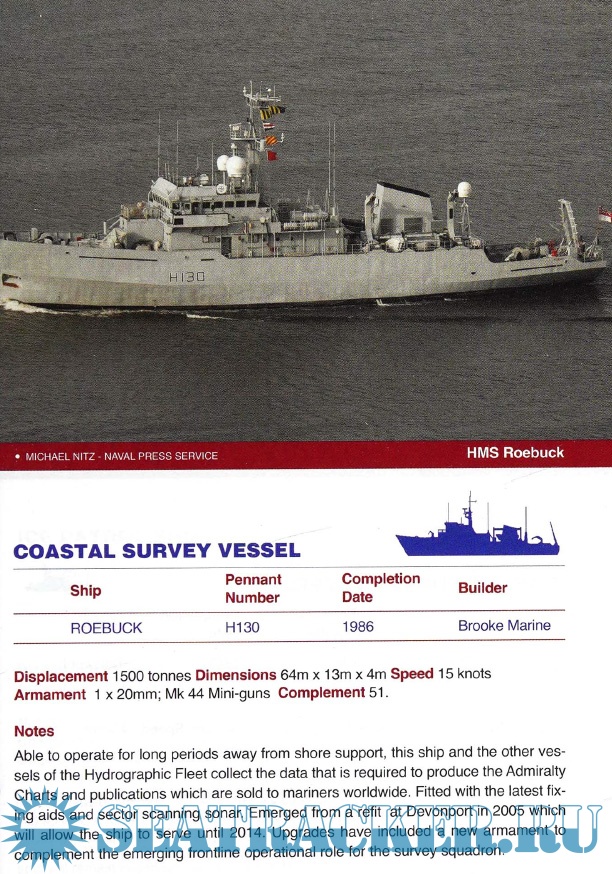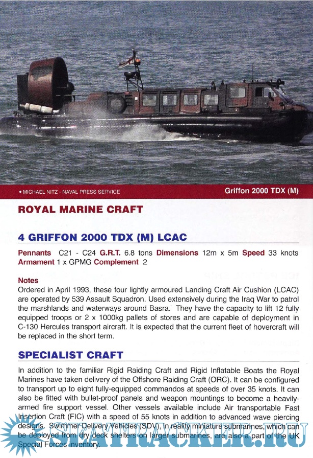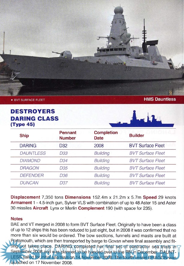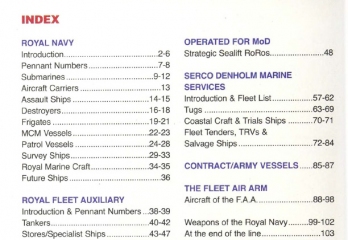 Year: 2009 Language: English Author: Steve Bush Genre: Catalog, Encyclopedia, Historical Publisher: Maritime Books Format: PDF Quality: eBook Pages count: 108 Description: This revised and updated guide to Ships, Aircraft and Armaments of the Royal Navy has now been expanded to include ships of the Royal Marines and the Border Agency as of 2009. The book begins with a detailed overview of the current state of the Royal Navy, followed by sections detailing the fleets of the Royal Navy, Royal Navy auxiliary vessels and support vessels operated under contract. This also includes vessels of the Royal Marines, Land Forces and Border Troops. This volume, which contains color images for each class of ships, also contains silhouettes, class lists, pennant numbers, technical specifications and brief notes. At the end of the book is a list of ships mothballed in the United Kingdom and performing a secondary role after decommissioning, as well as a brief description of ships that have been scrapped since the publication of the previous edition.