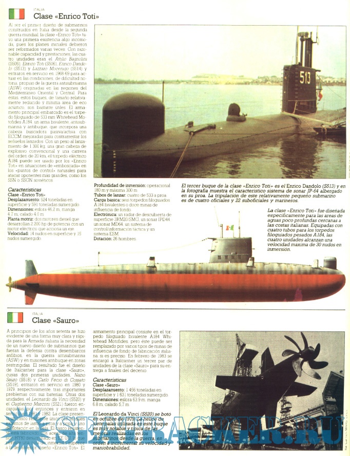 Year: 1985 Language: Spanish Author: Planeta-Agostini Genre: Encyclopedia, Historical Publisher: Planeta-Agostini Format: PDF Quality: Scanned pages Pages count: 21 Description: Enciclopedia de las Armas del Siglo XX. Esta obra de Planeta-Agostini consta de 120 fasciculos encuadernables en 10 volúmenes. En esta numero: Submarinos diesel modernos. A mediados de los años cincuenta, la llegada de la propulsión nuclear pareció anunciar la desaparición de los viejos modelos de submarinos diesel, pero en la practica este tipo de buques retiene todavía una vigencia plena.