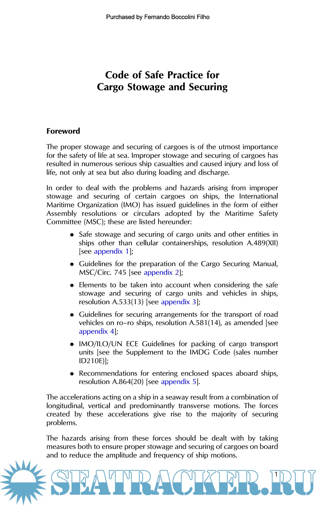 Code of Safe Practice for CARGO STOWAGE AND SECURING