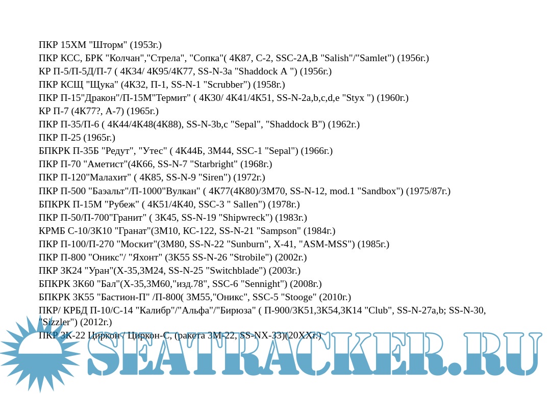 Описание: Крылатые ракеты морского и берегового базирования СССР и России, а также их носители