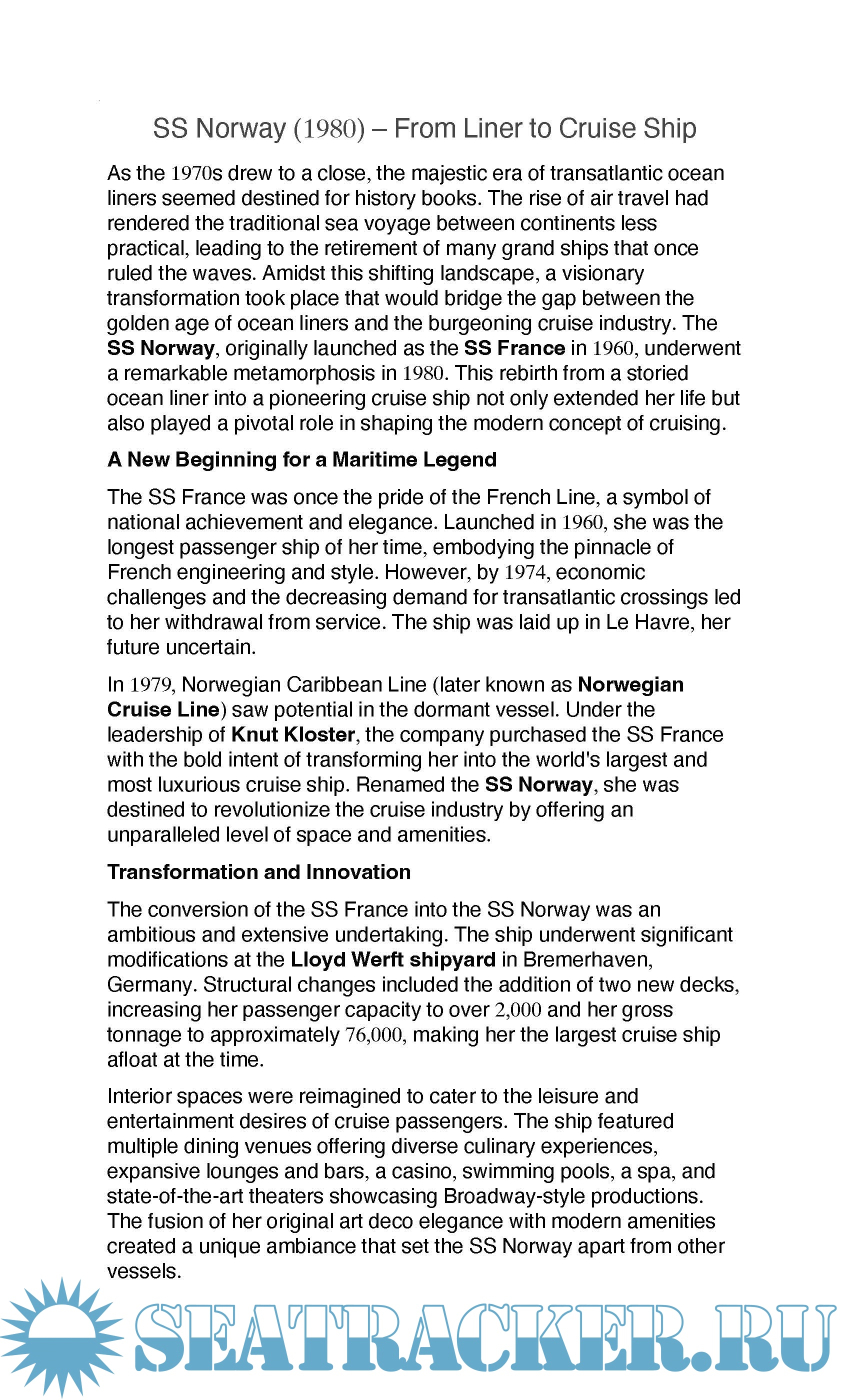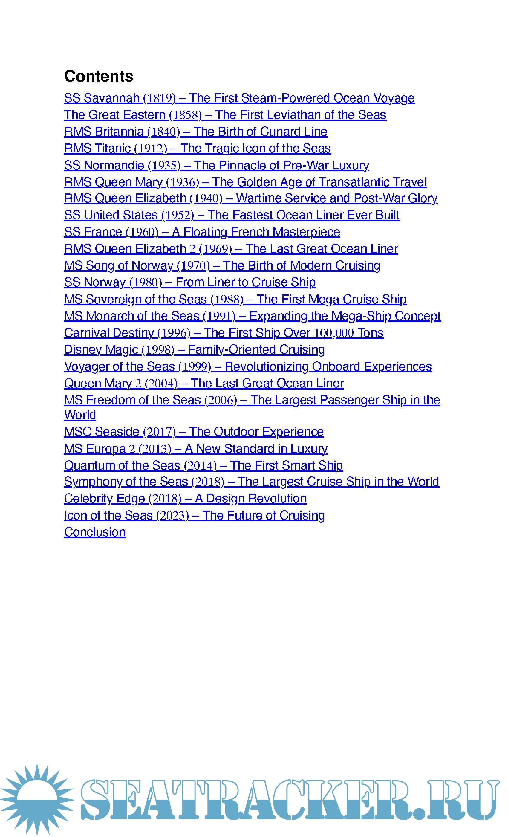 Each chapter offers detailed insights into the ship’s design, innovations, and impact on the cruise industry. Whether you’re a maritime enthusiast, a history buff, or simply curious about the evolution of cruise travel, 25 Milestones in Cruise Liners provides an engaging and richly researched journey through the golden age of ocean liners and beyond.