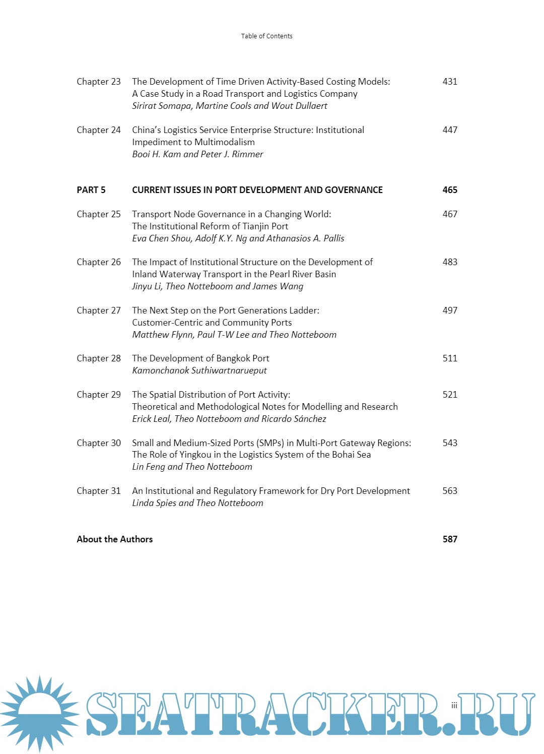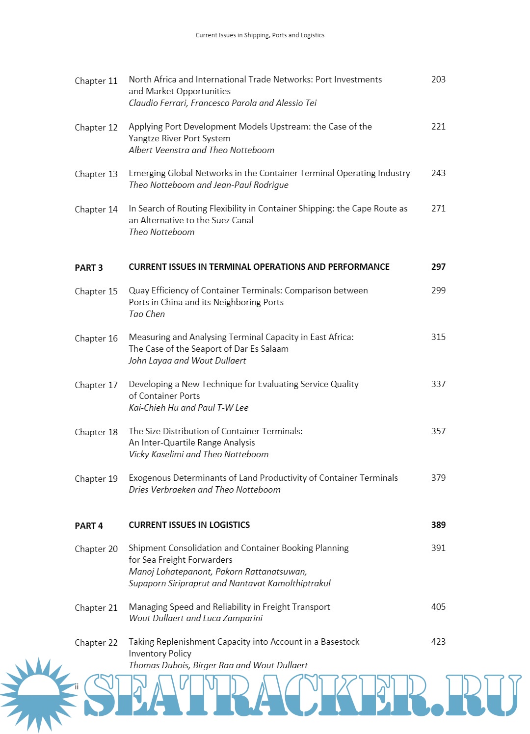 networks, current issues in terminal operations and performance, current issues in logistics and current issues in port development and governance.