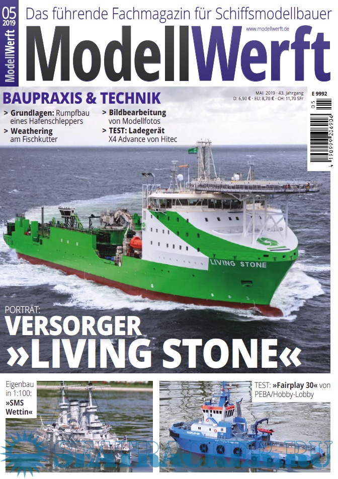 Year: 2019 Language: German Author: Eric Schafenrort (Redaktor) Genre: Periodical publication, Periodical publication Edition: 2019-05 Format: PDF Quality: eBook Pages count: 84 Description: Das führende Fachmagazin für Schiffsmodellbauer. Egal ob Stand- oder Fahrmodell, ob kleines Segelboot oder gigantisches Kreuzfahrtschiff. Die Modellwerft informiert über Neuheiten, hilft mit Bautipps und fasziniert mit besonderen Reportagen.