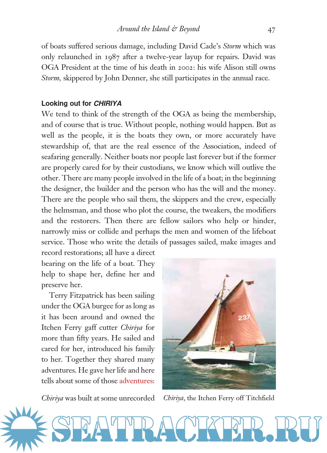 Year: 2013 Language: English Author: Head V. Genre: Historical Publisher: Quartet Books Limited Format: PDF Quality: eBook Pages count: 303 Description: Stories from 50 years of the Old Gaffers Association. Created fifty years ago after a three-way conversation in a public house, the Old Gaffers Association grew into a group of enthusiasts who rescued a vital part of our maritime heritage from almost certain extinction. This jaunty celebration, lavishly illustrated, demonstrates how gaff-rigged sailing vessels are alive in a way no other boat could ever be. In this book their owners tell of their stylish, characterful and sea-kindly craft - and some of their adventures. There are tales, too, of solo sailors and families embarking on voyages across the oceans that have seen the Old Gaffers Association become a world-wide community. Jim Rockeller, owner of the Bald Mountain Boat Works in Camden, Maine, and instigator of the first OGA group in America, wrote of the OGA in 1968: 'Membership requirements are simple. One needn't know the difference between a throat and a peak halyard; one need only know that putting to sea in a gaff-rigged vessel is a special kind of magic not found in other kinds of sailing.' This magic of traditional sailing has cast its spell much closer to home, too - simply messing about in boats, alone, joining in regattas or cruising with families and friends. This book will delight every boating enthusiast. As the cheers greeting the traditional boats that graced The Queen's Jubilee Thames Pageant showed, they bring out the salty seadog in us all.