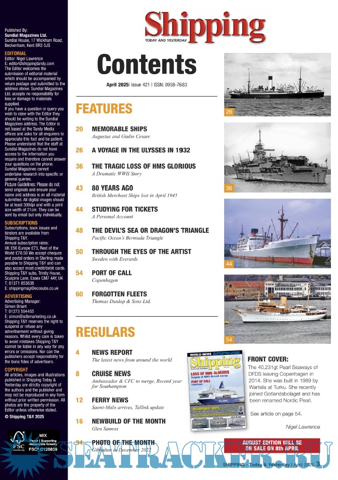 Description: Warships IFR puts the spotlight on the latest developments in the world’s navies. It covers current defence issues and has comments by leading analysts. The magazine regularly includes features on the Royal Navy and the US Navy in addition to incorporating news and features on all other navies across the globe. Warships IFR frequently carries in-depth articles on naval heritage.WARSHIPS International Fleet Review is published 12 times a year by Tandy Media Ltd who also publish Shipping Today & Yesterday (which provides news and features from the world of merchant shipping).