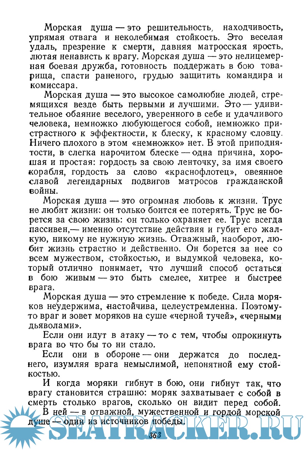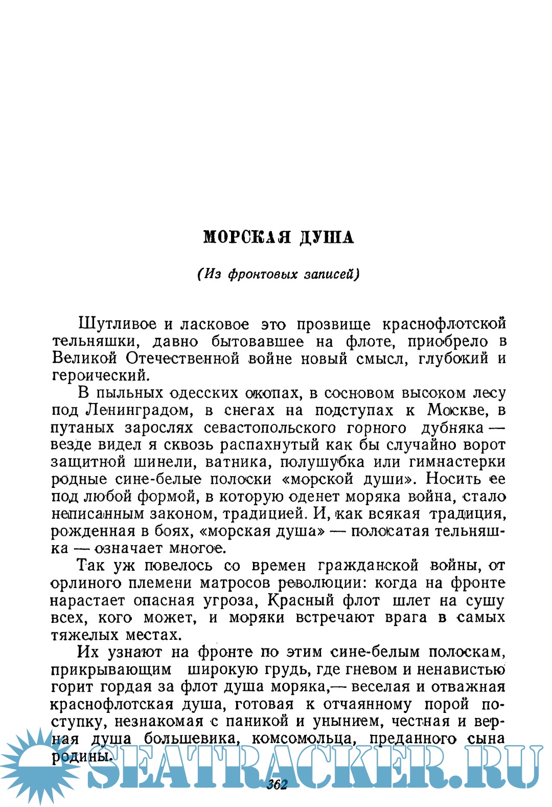 Год выпуска: 1952 Язык: Русский Автор: Леонид Соболев Жанр: Рассказы Издательство: Свердловское Государственное Областное Издательство Формат: PDF Качество: Отсканированные страницы + слой распознанного текста Количество страниц: 551 Описание: В дни, когда мы вспоминаем подвиги тех, кто сражался за мир и свободу, книга Леонида Соболева «Морская душа» становится особенно значимой. Это произведение о настоящем мужестве, о моряках, которые не щадили своих сил, чтобы защищать Родину в самые тяжёлые годы Великой Отечественной войны. Леонид Соболев, сам переживший войну и будучи моряком, раскрывает перед читателем не только морские бои, но и душу советского флота. В его рассказах живёт дух братства и верности долгу, который присутствует в каждом морском путешествии и, особенно, в моменты героических сражений. Через истории о подводниках, морских пехотинцах и бойцах морской авиации автор напоминает о тех, кто внес свой неоценимый вклад в победу, оставаясь преданными своей цели — защищать мирное небо над головой, просторы открытого моря и мирную землю под ногами. Каждая страница этой книги — это напоминание о том, какой ценой была достигнута Победа. Подвиг моряков, их героизм и самоотверженность стали неотъемлемой частью истории, которая живет в наших сердцах и в памяти потомков. Эта книга — напоминание о том, что подвиги моряков и их отвага на фронтах войны навсегда останутся частью нашей истории и нашим долгом будет всегда помнить их великое мужество.