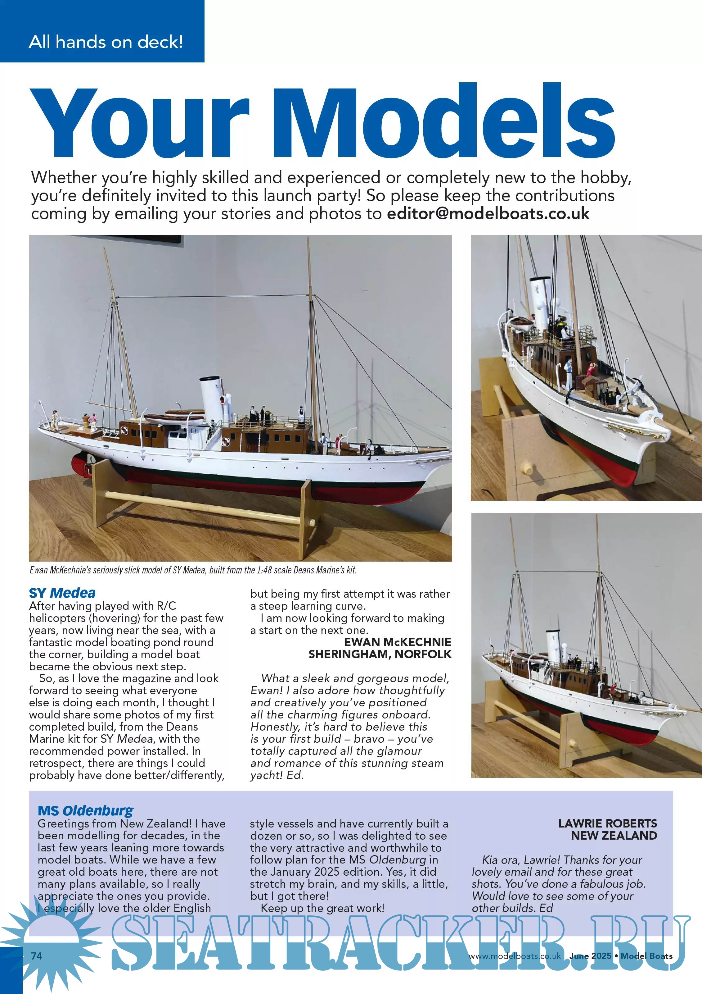 Year: 2025 Language: English Author: Lindsey Amrani (Editor) Genre: Magazine, Periodical publication Publisher: Kelsey Media Ltd Edition: Vol. 75 № 895 June 2025 Format: PDF Quality: Scanned pages Pages count: 84 Description: Model Boats magazine is a practical and informative read for those with a love for the hobby. It covers the latest news and views from the various clubs and associations around the country, useful hints, tips and step by step guides for those interested in the art of constructing a model boat as well as tests and recommendations of new boats and tools. Floating along behind these are great special features examining in depth different models from narrowboat to destroyer!