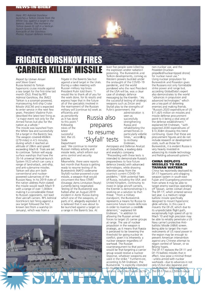 Description: Warships IFR puts the spotlight on the latest developments in the world’s navies. It covers current defence issues and has comments by leading analysts. The magazine regularly includes features on the Royal Navy and the US Navy in addition to incorporating news and features on all other navies across the globe. Warships IFR frequently carries in-depth articles on naval heritage.WARSHIPS International Fleet Review is published 12 times a year by Tandy Media Ltd who also publish Shipping Today & Yesterday (which provides news and features from the world of merchant shipping).