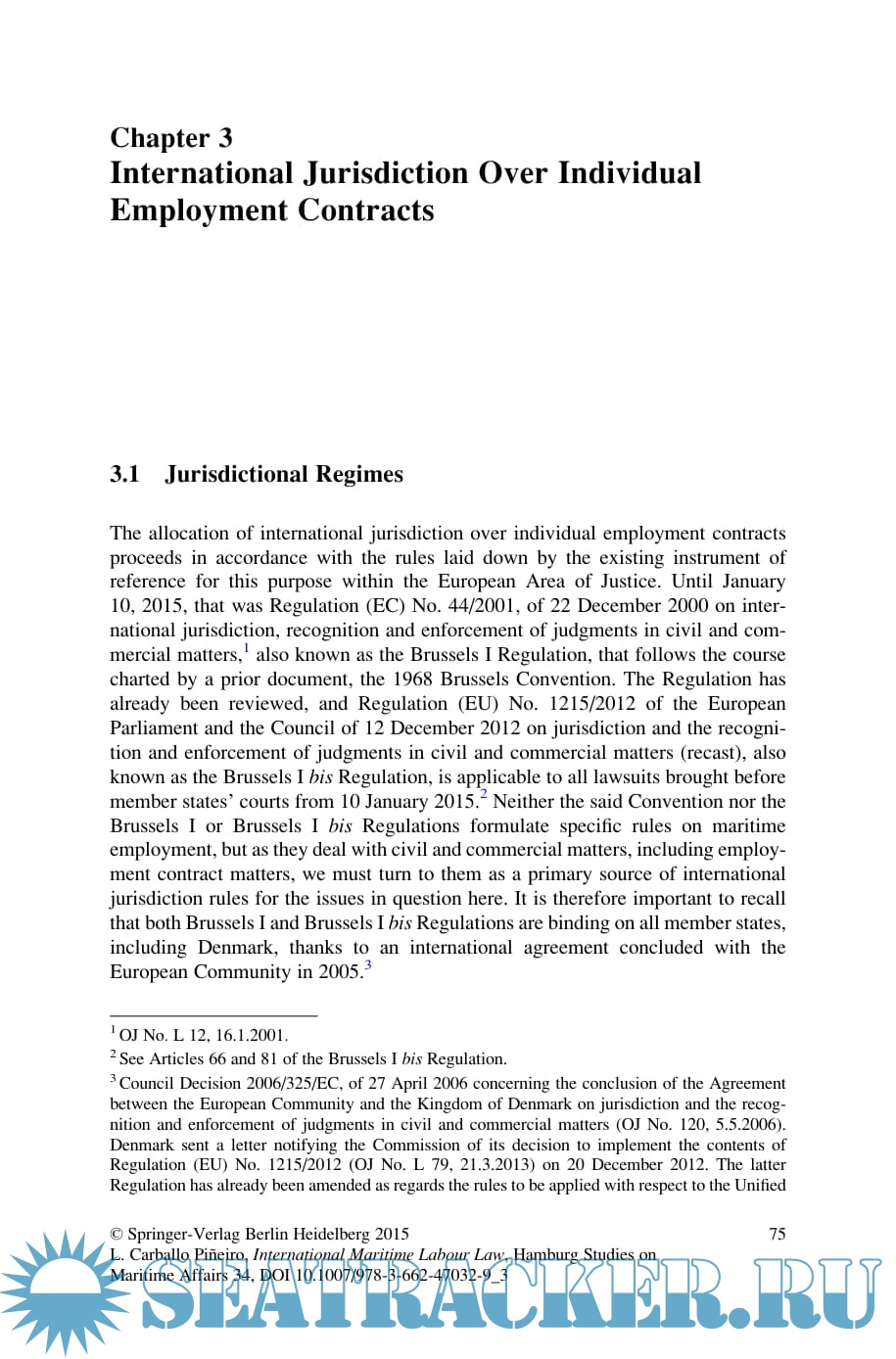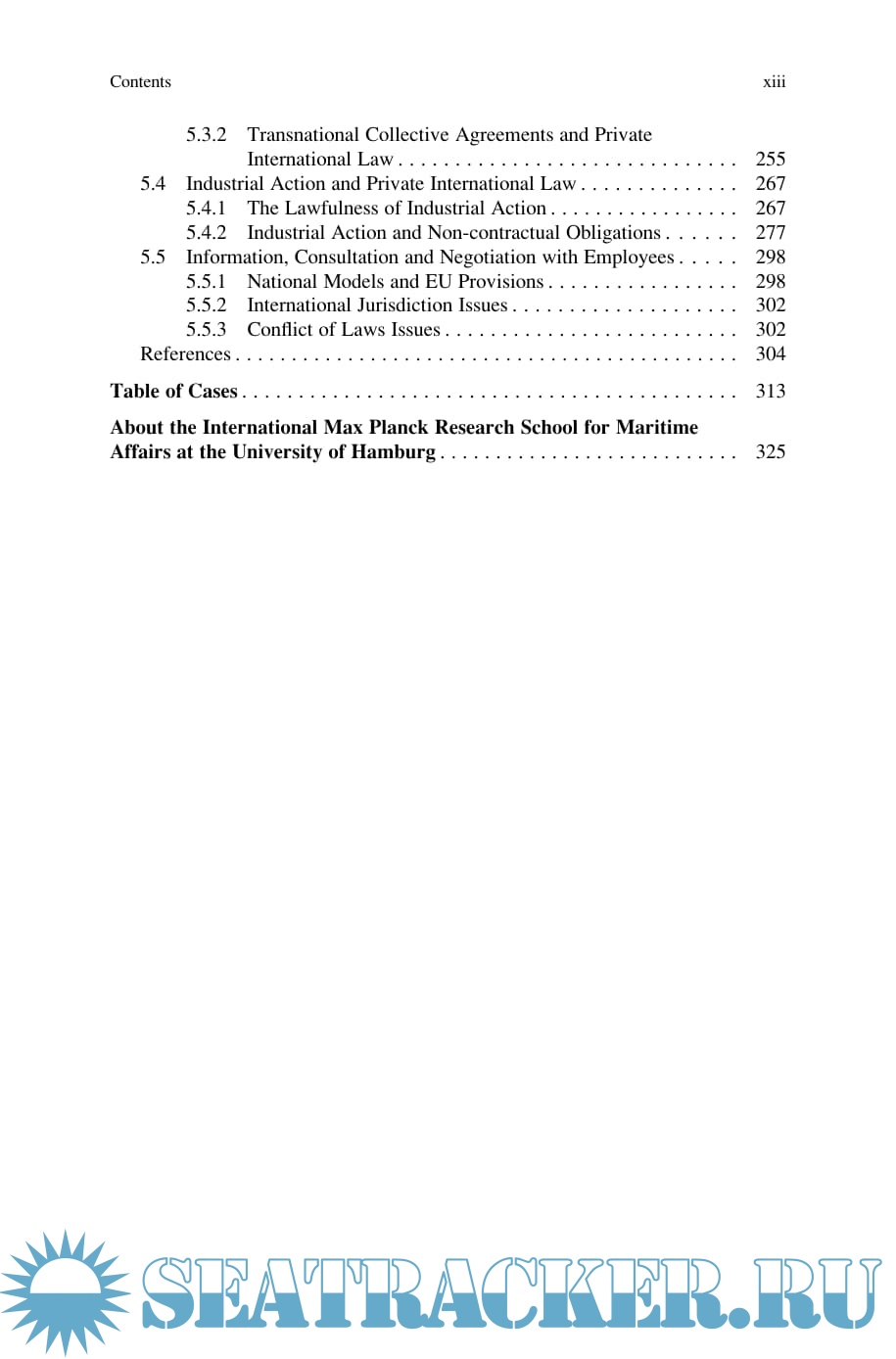 Year: 2015 Language: English Author: Laura Carballo Pineiro Publisher: Springer Edition: 1st ISBN: 978-3-662-47032-9 Format: PDF Quality: eBook Pages count: 326 Description: This book focuses on maritime employment from a private international law perspective. The first chapter analyzes the background against which international jurisdiction and conflict of laws rules are drawn up and examines uniform law in this context, in particular the 2006 Maritime Labour Convention and the 2007 ILO Convention No. 188 on Work in Fishing. The second chapter addresses international jurisdiction issues as regards individual employment contracts, while also exploring other issues (e.g. insolvency-related and social security matters) that are subsequently revisited in the third chapter while discussing conflict of laws issues related to said contracts. In turn, chapter four focuses on collective labour relations and private international law, i.e. collective agreements, strikes and other forms of collective action and information, and on the participation rights of employees in business matters.