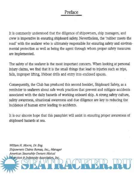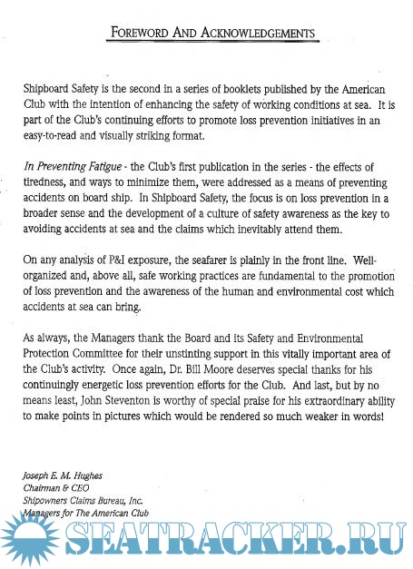 Year: 2022 Language: English Author: Joseph E. M Hughes Format: PDF Quality: eBook Pages count: 22 Description: Shipboard Safety is the second in a series of booklets published by the American Club with the intention of enhancing the safety of working conditions at sea. It is part of the Club’s continuing efforts to promote loss prevention initiatives in an easy-to-read and visually striking format. In Preventing Fatigue – the Club’s first publication in the series – the effects of tiredness, and ways to minimize them, were addressed as a means of preventing accidents on board ship. In Shipboard Safety, the focus is on loss prevention in a broader sense and the development of a culture of safety awareness as the key to avoiding accidents at sea and the claims which inevitably attend them. On any analysis of P&I exposure, the seafarer is plainly in the front line. Well-organized and, above all, safe working practices are fundamental to the promotion of loss prevention and the awareness of the human and environmental cost which accidents at sea can bring. As always, the Managers thank the Board and its Safety and Environmental Protection Committee for their unstinting support in this vitally important area of the Club’s activity. Once again, Dr. Bill Moore deserves special thanks for his continuingly energetic loss prevention efforts for the Club. And last, but by no means least, John Steventon is worthy of special praise for his extraordinary ability to make points in pictures which would be rendered so much weaker in words!
