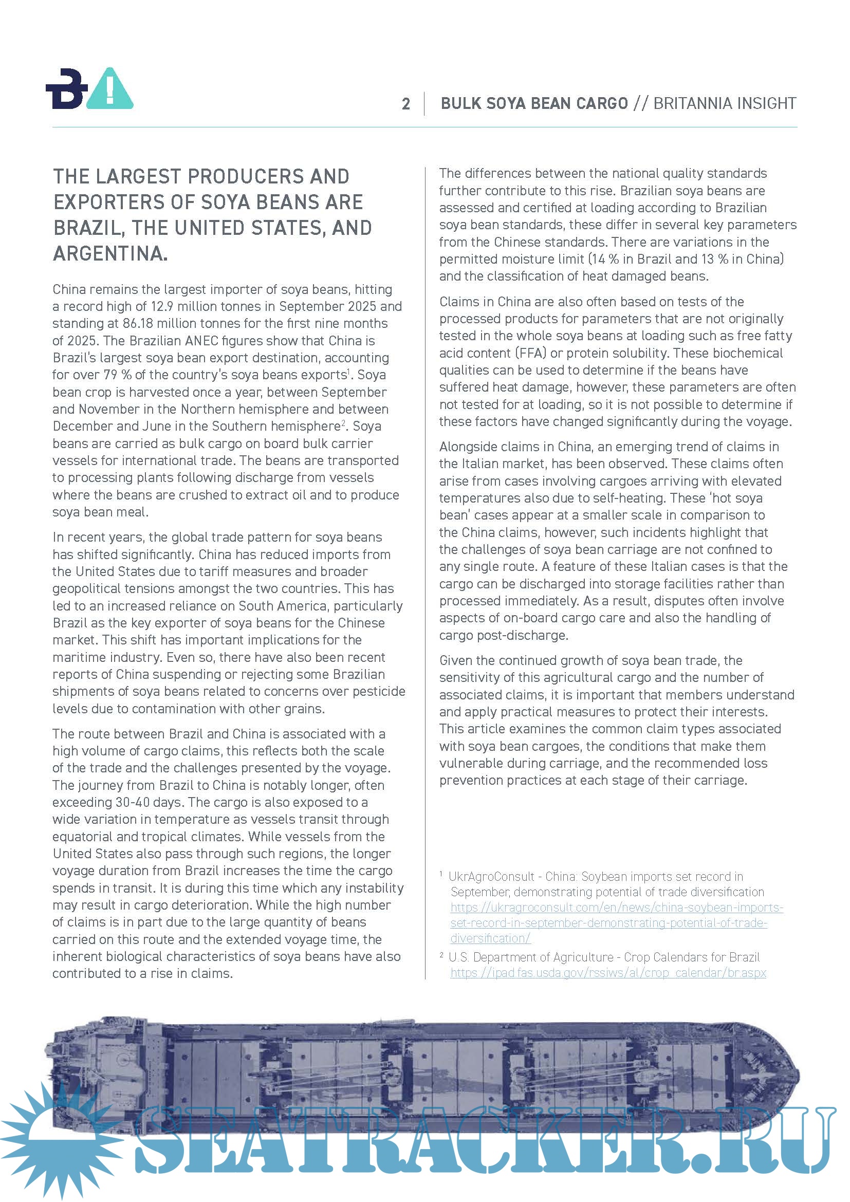 Carriage of Soya Bean cargoes : an overview for the maritime sector