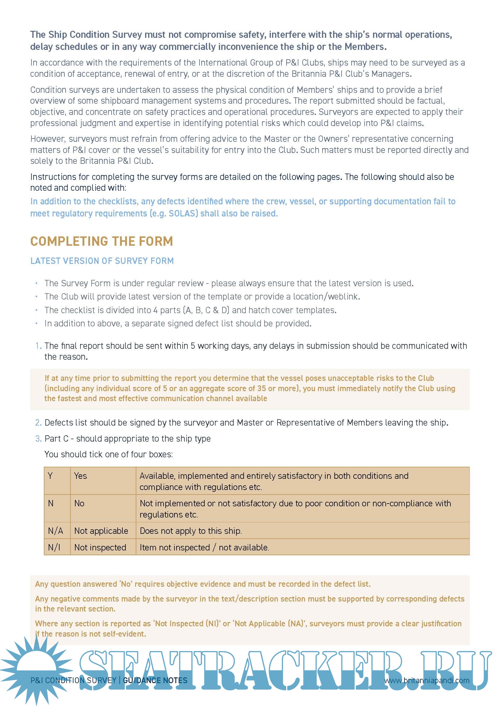 Guidance notes for Masters/Surveyors and Scope of p&i condition survey