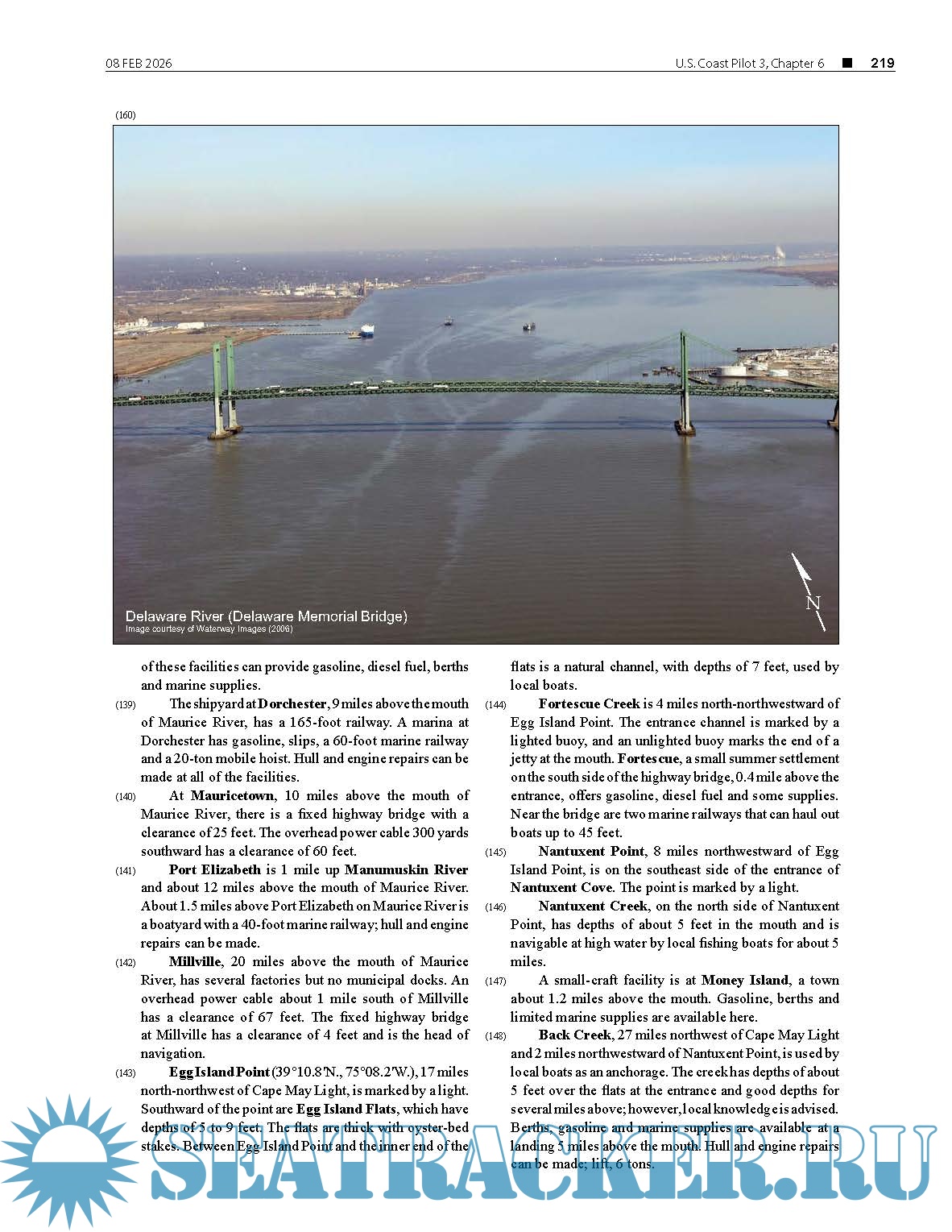 Description: The United States Coast Pilot® supplements the navigational information shown on NOAA nautical charts. The publication is continually updated and maintained from inspections conducted by NOAA survey vessels and field parties, corrections published in Notices to Mariners, information from other Federal agencies, State and local governments, maritime and pilots’ associations, port authorities, and concerned mariners.