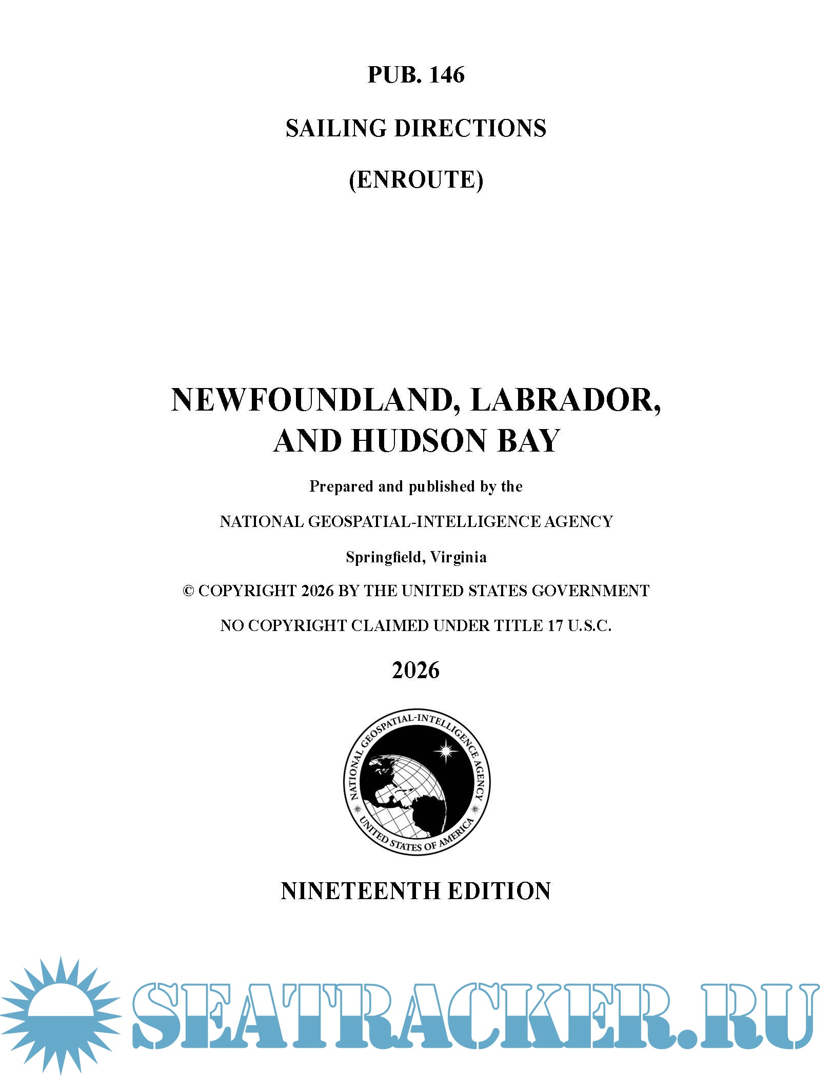 Description: Pub.146, Sailing Directions (Enroute) Newfoundland, Labrador, and Hudson Bay, Nineteenth Edition, 2026, is issued for use in conjunction with Pub. 140, Sailing Directions (Planning Guide) North Atlantic Ocean and Adjacent Seas. Companion volumes are Pubs. 141, 142, 143, 145, 147, and 148.