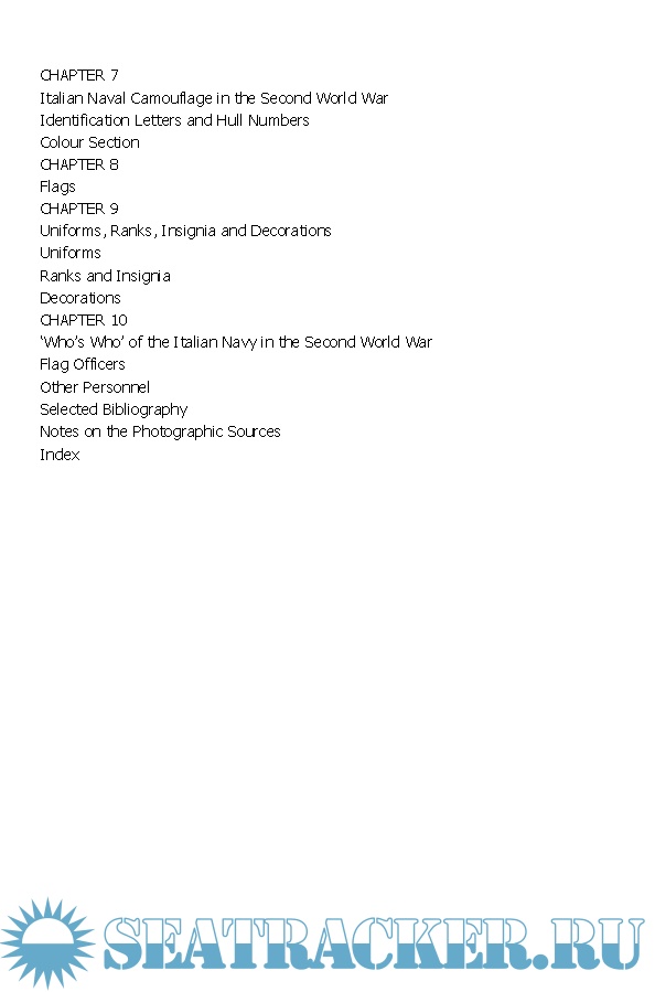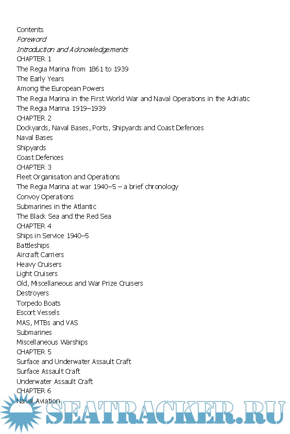 Year: 2012 Language: English Author: Maurizio Brescia Genre: History of the Navy Publisher: Naval Institute Press Format: ePUB Quality: eBook Pages count: 508 Description: This book is the only complete guide in English to the Regia Marina, the Italian navy with which Mussolini fought World War II. Starting with the historical background, it describes how the navy developed, how it was organized, the facilities that supported it, and the operations it conducted both before and after the armistice in 1943. It also details all its ships, with full technical particulars, plans and photos. There are chapters on special topics like camouflage; uniforms, decorations and insignia; and a 'who's who' of important naval personalities. The reference value of the book is enhanced by a comprehensive bibliography and guide to sources. The illustrations are drawn from the author s collection of naval photographs, considered one of the best in Italy.
